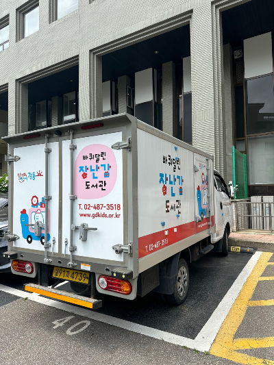 예약한 장난감 수령을 위해 천호점에 방문을 했더니 입구에 이렇게 아담하고 귀여운 바퀴달린 장난감 택배트럭이 있더라구요 :)