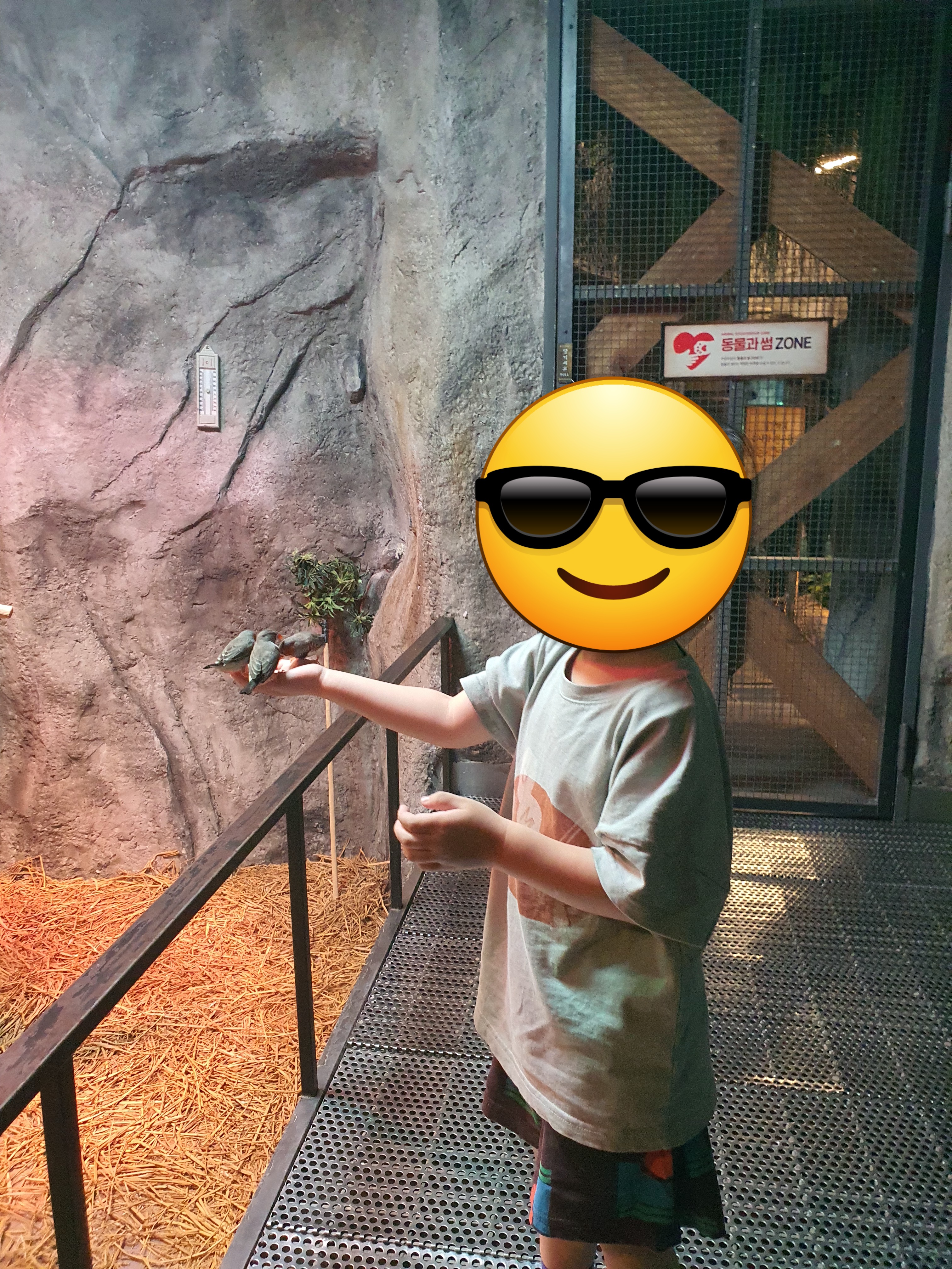 오전 시간이라 동물들이 먹이를 잘 못 받아먹었는지 아주 적극적이었어요!! 예전에 큰 탱이랑 오후 느지막이 입장했을 때는 주렁주렁 입장하자마자 만날 수 있었던 미어캣들이 항상 먹이를 많이 받아먹어 먹이를 줘도 잘 안 먹었는데 이날은 아주 잘 받아먹어서 큰 탱이가 좋아했지만 미어캣이 조금 안쓰럽기도 했어요. 마침 수달 먹이 주는 시간도 딱 맞아서 수달 먹이주기 체험도 할 수 있었는데 동물과의 교감 체험이 있을 때마다 실내에서 방송으로 시간과 장소를 언급해주니 집중해서 들어보시고 꼭 참여해 보세요! 이 날은 핀치들도 잘 날아와 먹이를 먹어주니 큰 탱이가 너무 행복해했어요! 🥰🥰