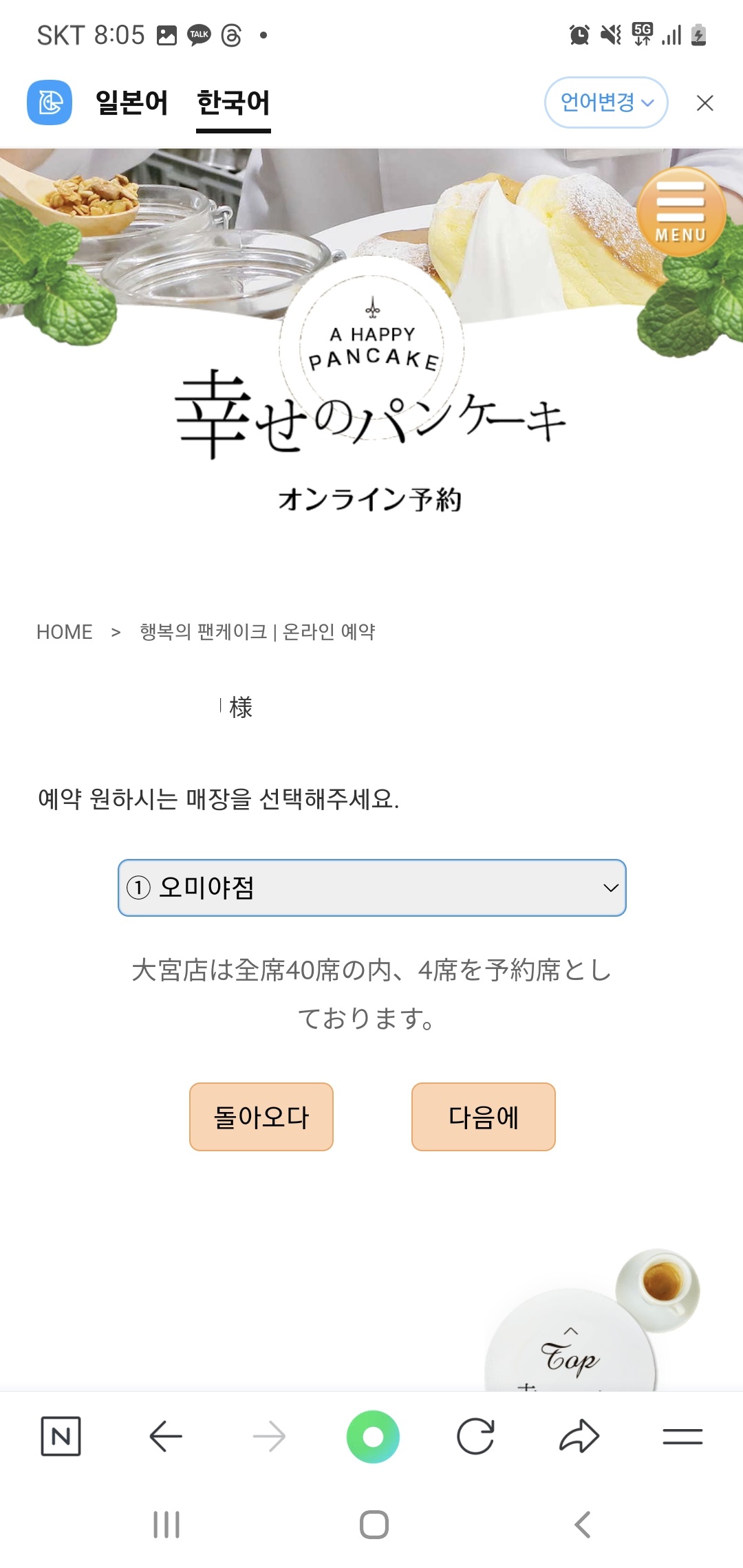 - 오키나와가 아니더라도 일본 여행하시는 곳의 시아와세노 팬케이크의 가까운 지점을 선택하셔서 예약하시면 됩니다.