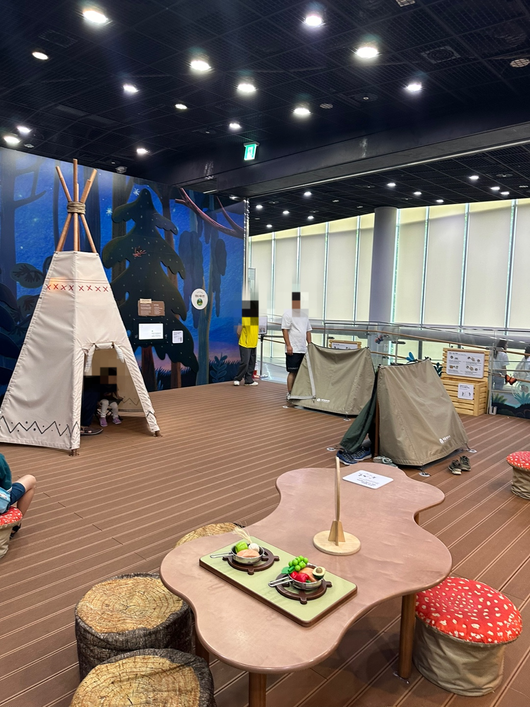 3층에는 물놀이 공간 말고도 문화 공간이 캠핑 컨셉으로 꾸며져 있어요~