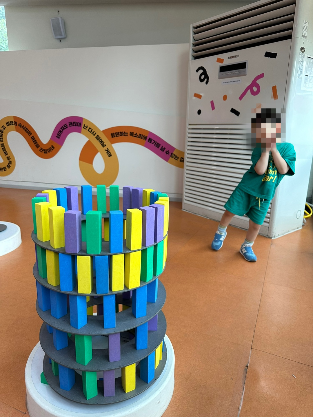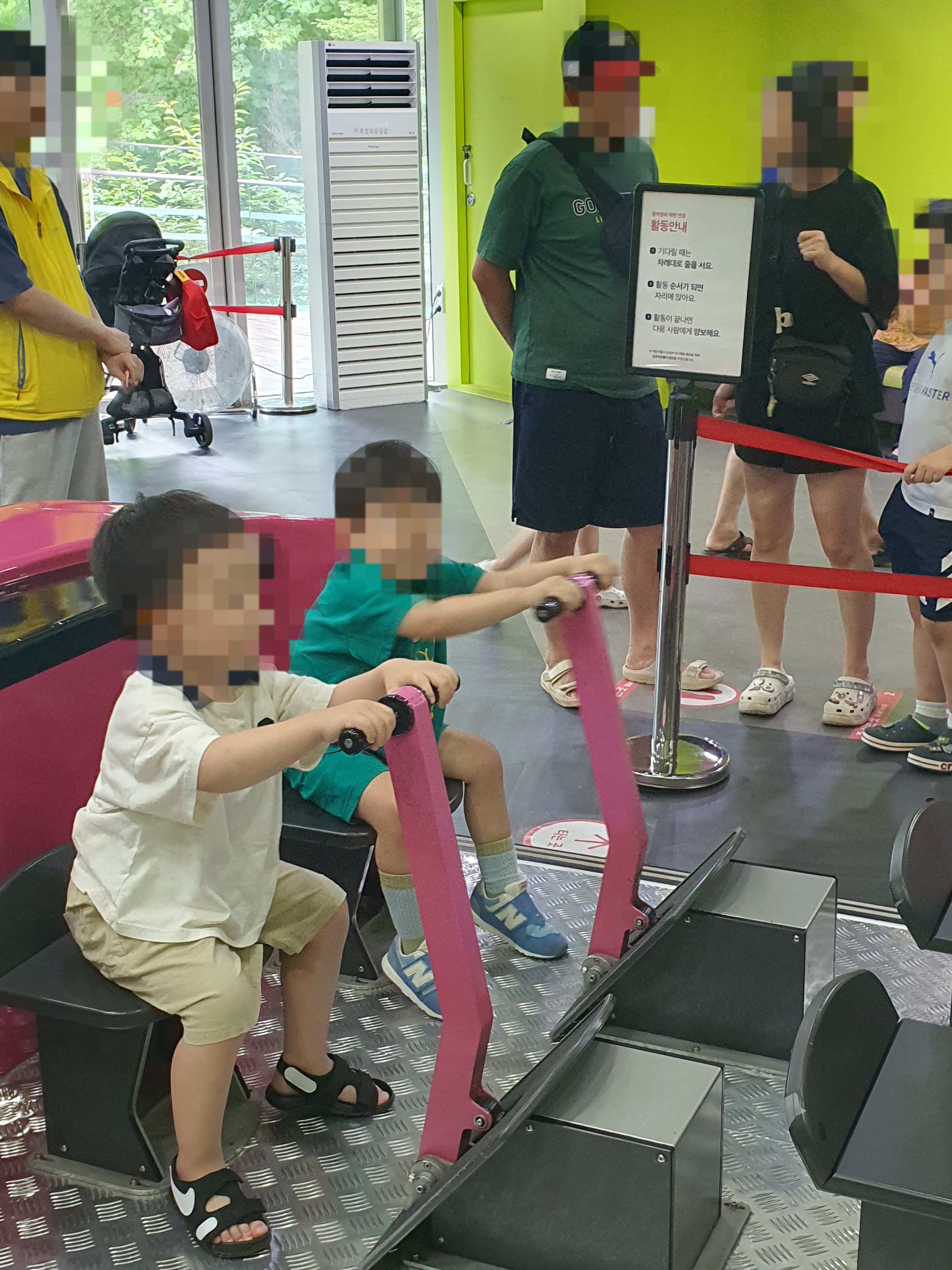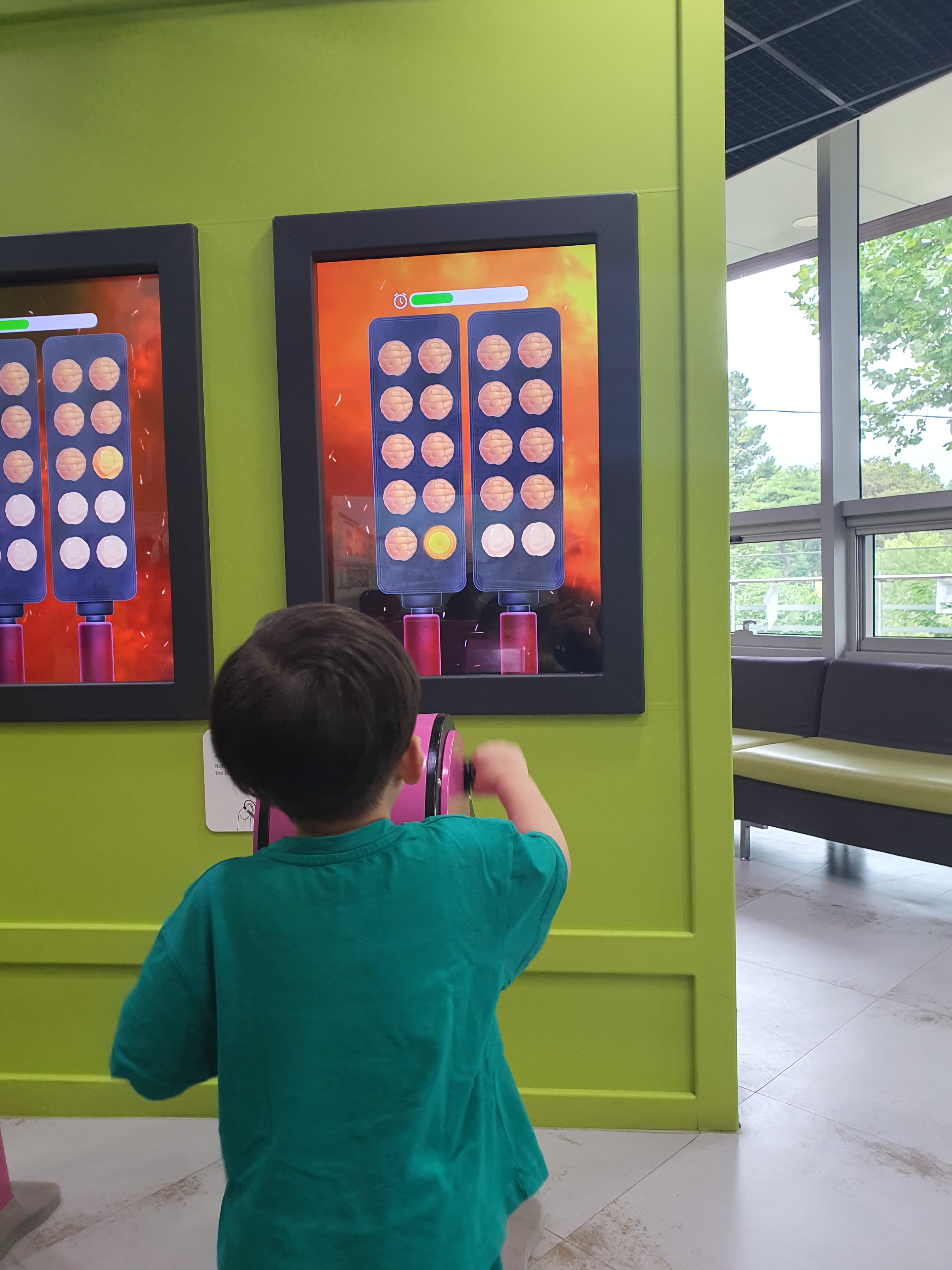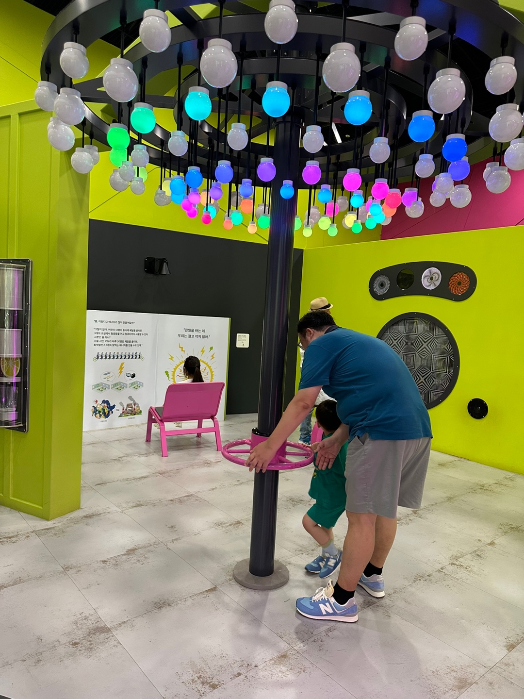 1층은 끼적이기나 퍼즐 맞추기 등 정적인 놀이들이 많은 반면, 2층에는 신체 활동 놀이가 많이 있어요. 몸을 움직여 에너지를 생성하는 경험을 할 수 있어요!! 주변에 안전요원들이 있어 아이들이 많아도 질서를 잘 잡아주셨어요!!