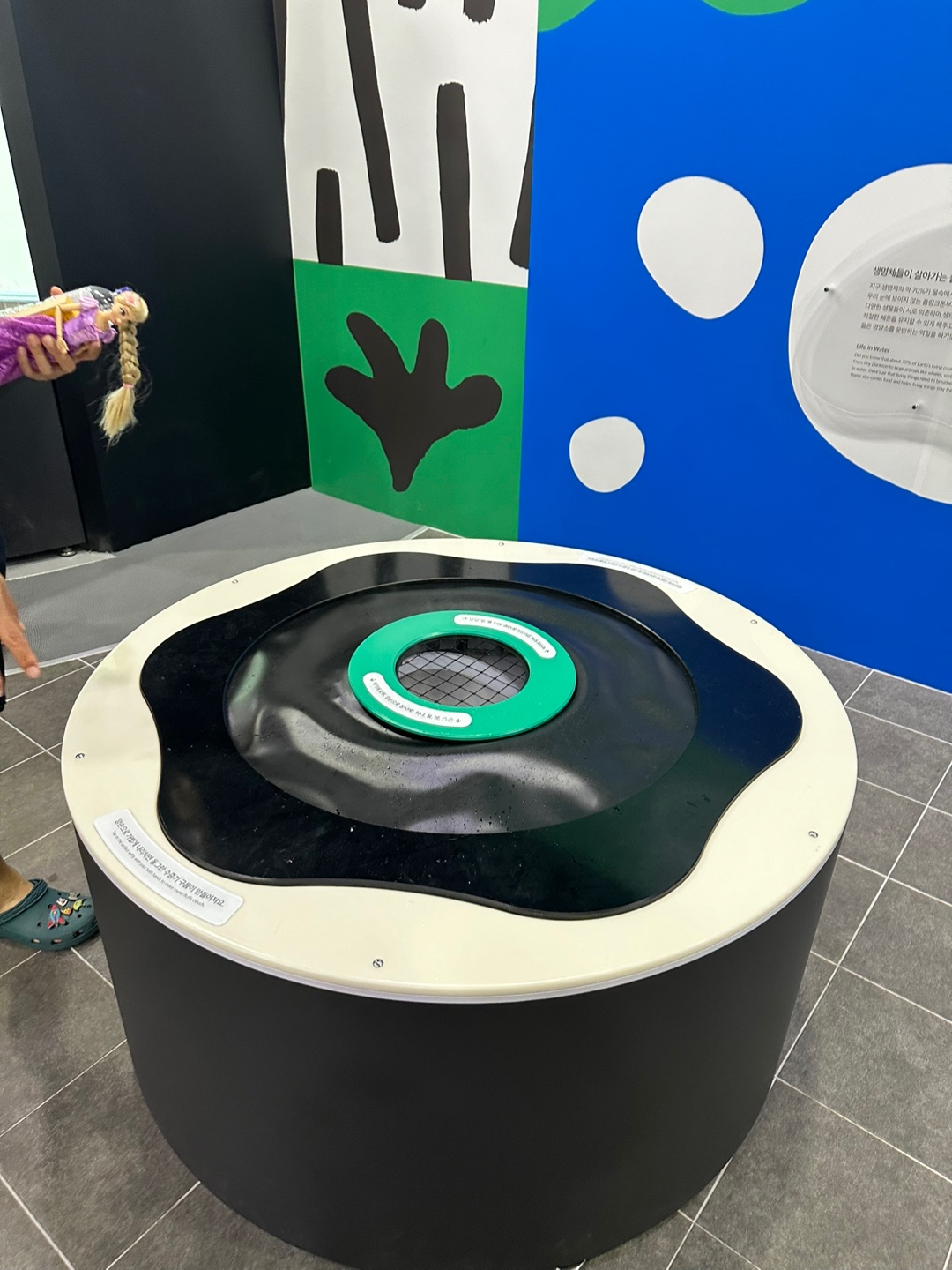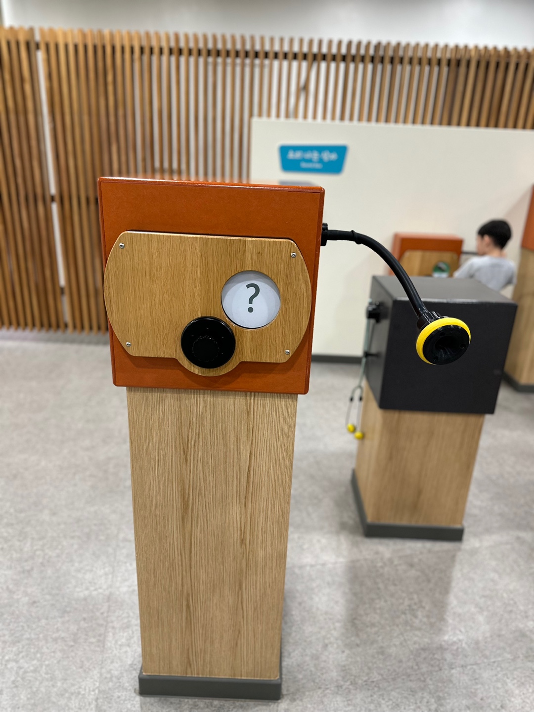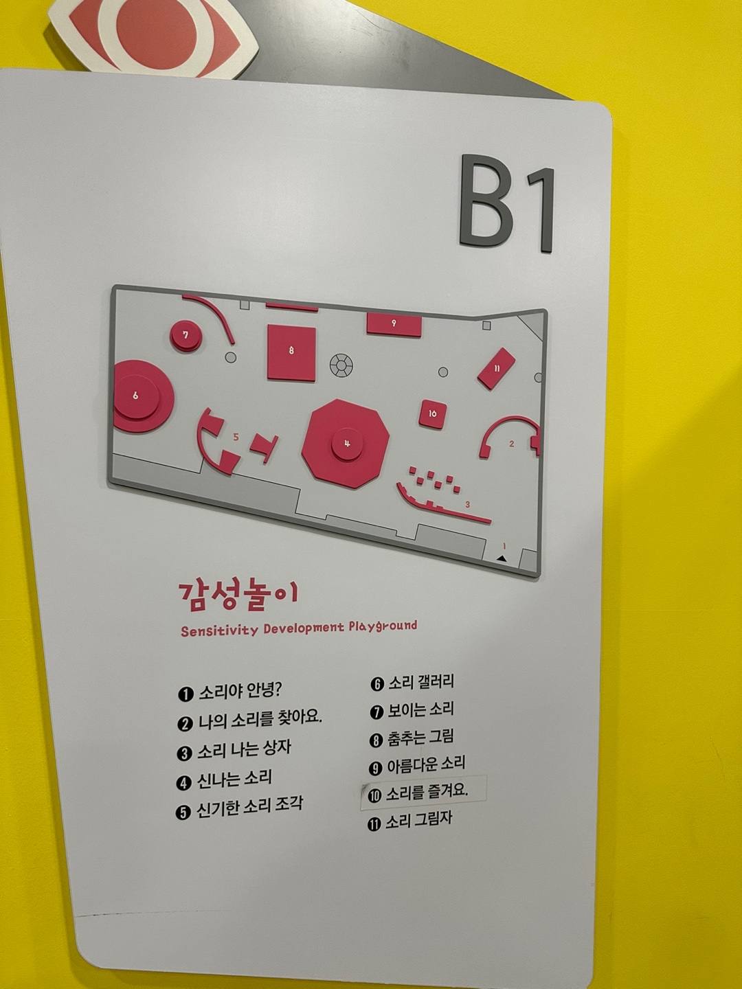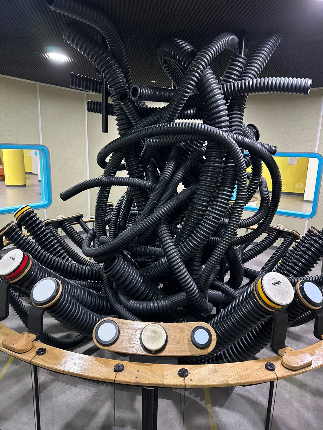 이렇게 1층부터 3층까지 정신없이 놀다 보면 시간이 훌쩍 가 있어서 지하 1층 공간까지 못 가보는 경우들도 있는데, 지하에도 흥미로운 체험거리들이 많이 있으니 놓치지 마세요!! 지하 공간은 "소리 경험으로 세상과 소통"이라는 주제로 꾸며져 있어요. 목소리를 녹음하고 내 목소리 찾기 놀이나 거대한 파이프 구조물을 두드리며 소리 만들기 등 재미있는 요소들이 많이 담겨져 있어요!!