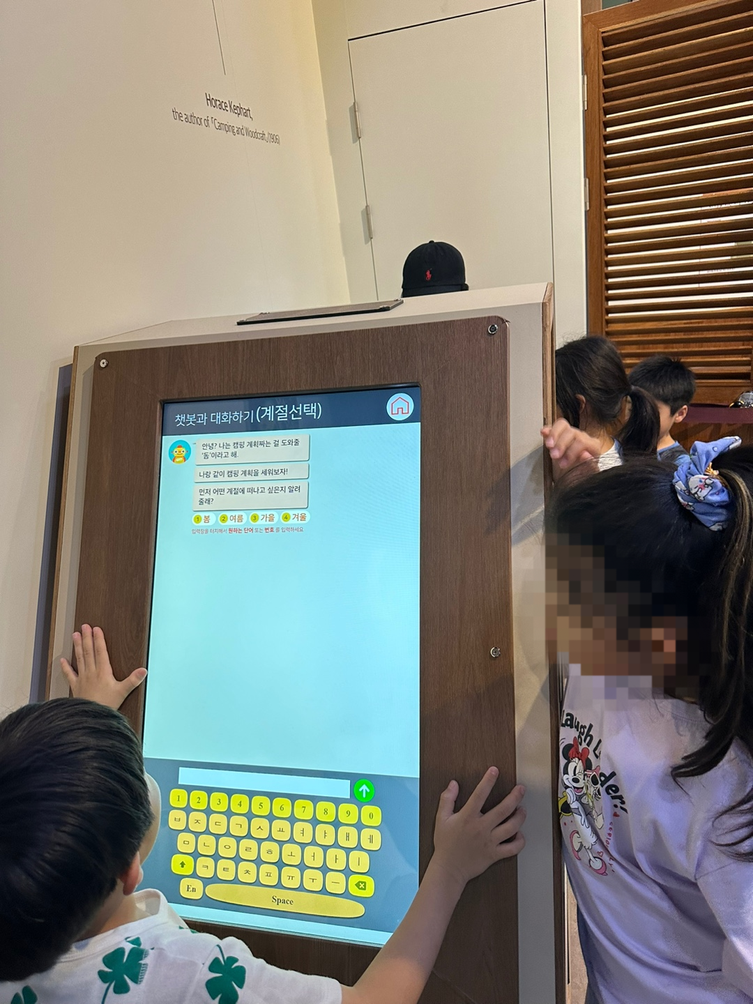 문화 공간에서는 캠핑 가방도 꾸려보고 장도 보고 캠프파이어 체험도 할 수 있어요. 트랜드에 맞게 이번에 챗피티도 설치되어 AI와 캠핑 관련 이야기도 주고받을 수 있었어요.