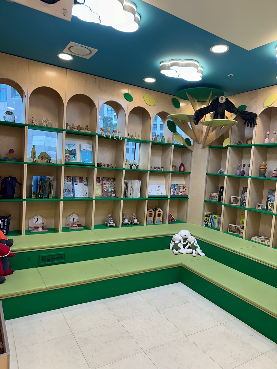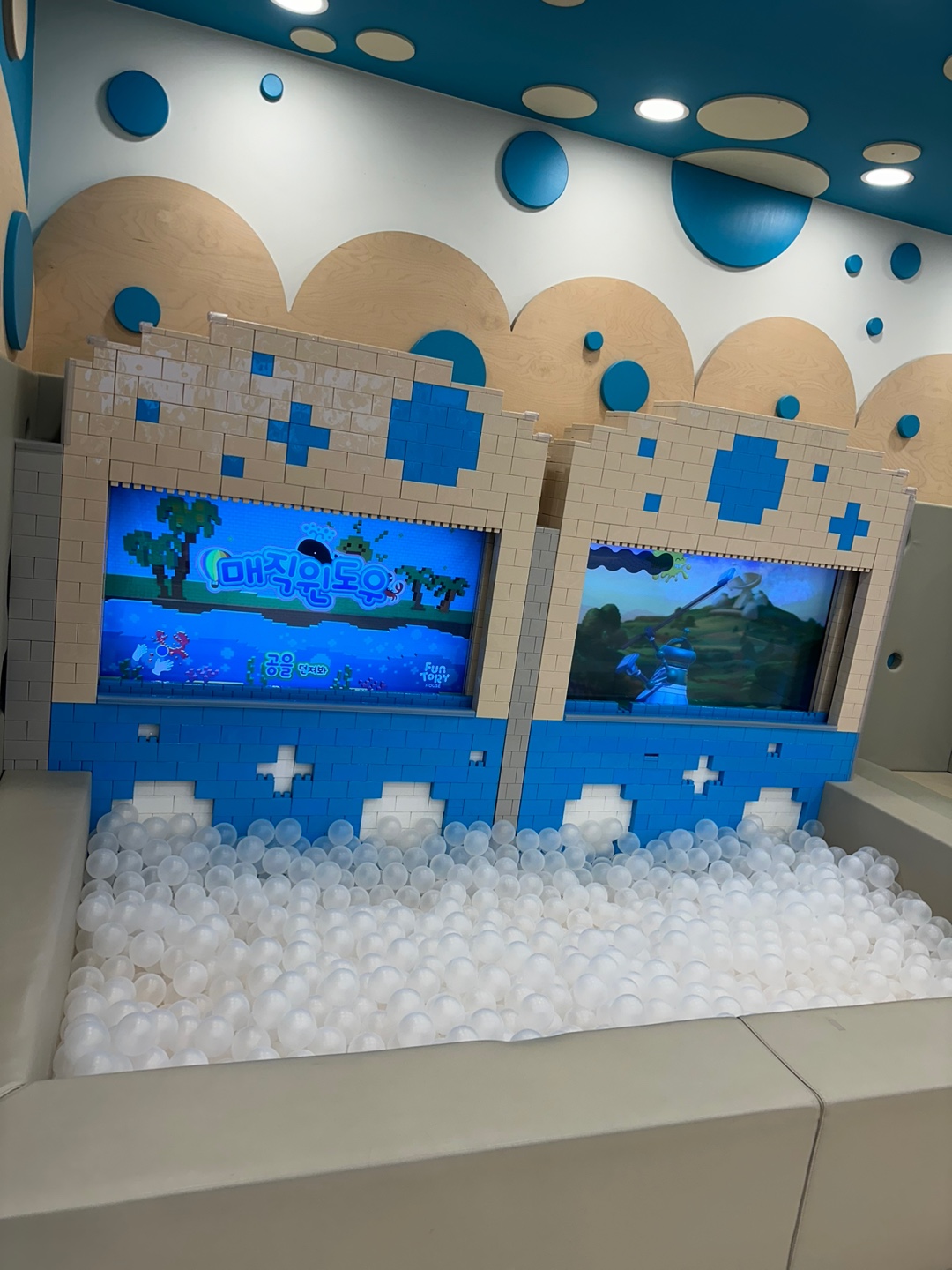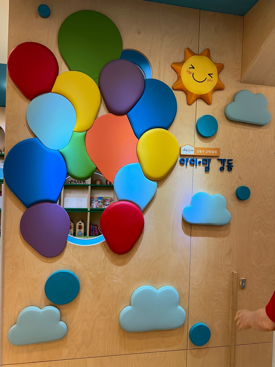 서울형 키즈카페 고덕2동점은 규모가 크지는 않아요. 하지만 한눈에 아이가 어디 있는지 볼 수 있는 점은 좋았어요!! 영유아들을 위한 공간이다 보니 수유실은 당연히 잘 되어 있었어요~ 규모는 작지만 2시간 놀기에는 아주 알차게 꾸며져 있어요!! 아담하지만 볼풀장도 있고, 볼을 맞출 수 있는 터치스크린도 있어서 큰 탱이는 공을 던진다고 정신없이 한참 놀았어요. 또한 원목으로 된 장난감들이 많이 있어서 작은 탱이도 잘 가지고 놀았고, 큰 탱이가 좋아하는 백희나 작가 동화랑 뽀로로 책도 있어서 책도 한참 읽었어요!!