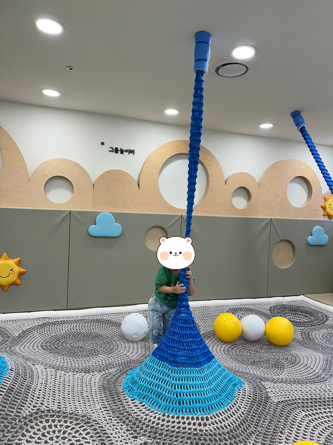 서울형 키즈카페 고덕2동점의 백미는 그물 놀이터가 아닐까 싶어요. 공도 던지고 매달리고 정신없이 뛰면서 아이들 체력을 뺄 수 있는 최고의 공간ㅎㅎ🤣🤣