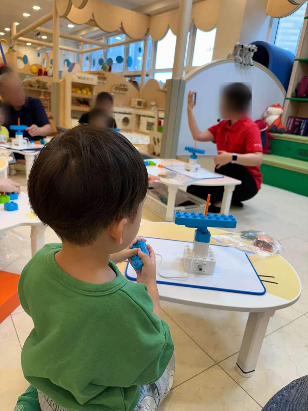 코딩 수업은 2타임으로 나눠서 진행됐어요. 매주 새로운 주제로 코팅 수업이 진행되는데 이번에 큰 탱이가 참여했던 코딩 수업 주제는 "움직이는 레스토랑 만들기" 였어요!! 이제는 좀 컸다고 선생님의 지시를 잘 따라 하더라고요!!😍😍 블록으로 레스토랑을 만들고, 아이가 원하는 조합으로 코딩을 짜서 움직이게 만드니 아이도 저도 매우 신기해했어요!! 탱탱맘은 코딩 세대가 아니다 보니 코딩이라는 단어 자체가 너무 생소했는데, 요즘은 초등 교과과정에도 포함된다고 하니 이런 기회로 아이가 코딩을 접해보면 좋을 것 같아요!!👌👌