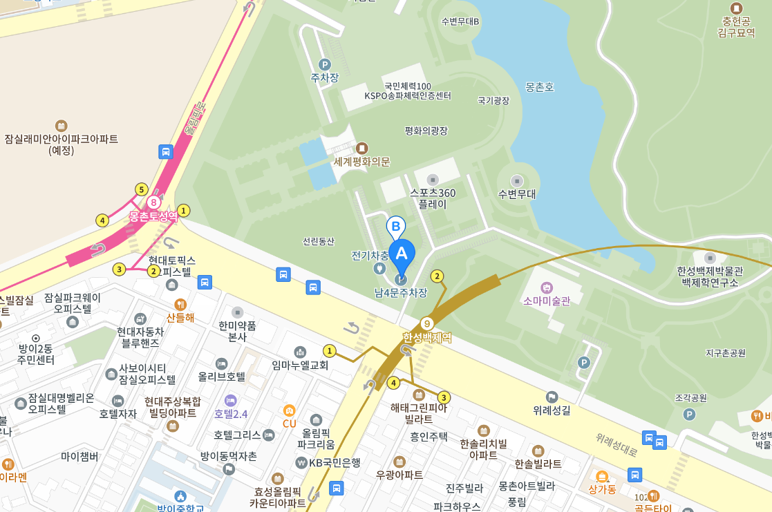 물놀이장에서 가장 가까운 올림픽공원 남4문 주차장 이용