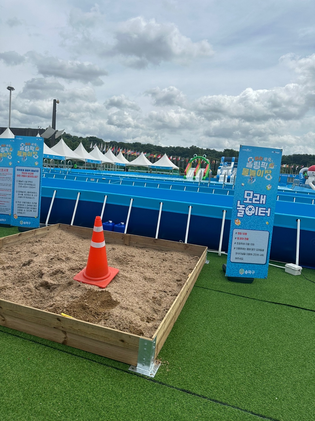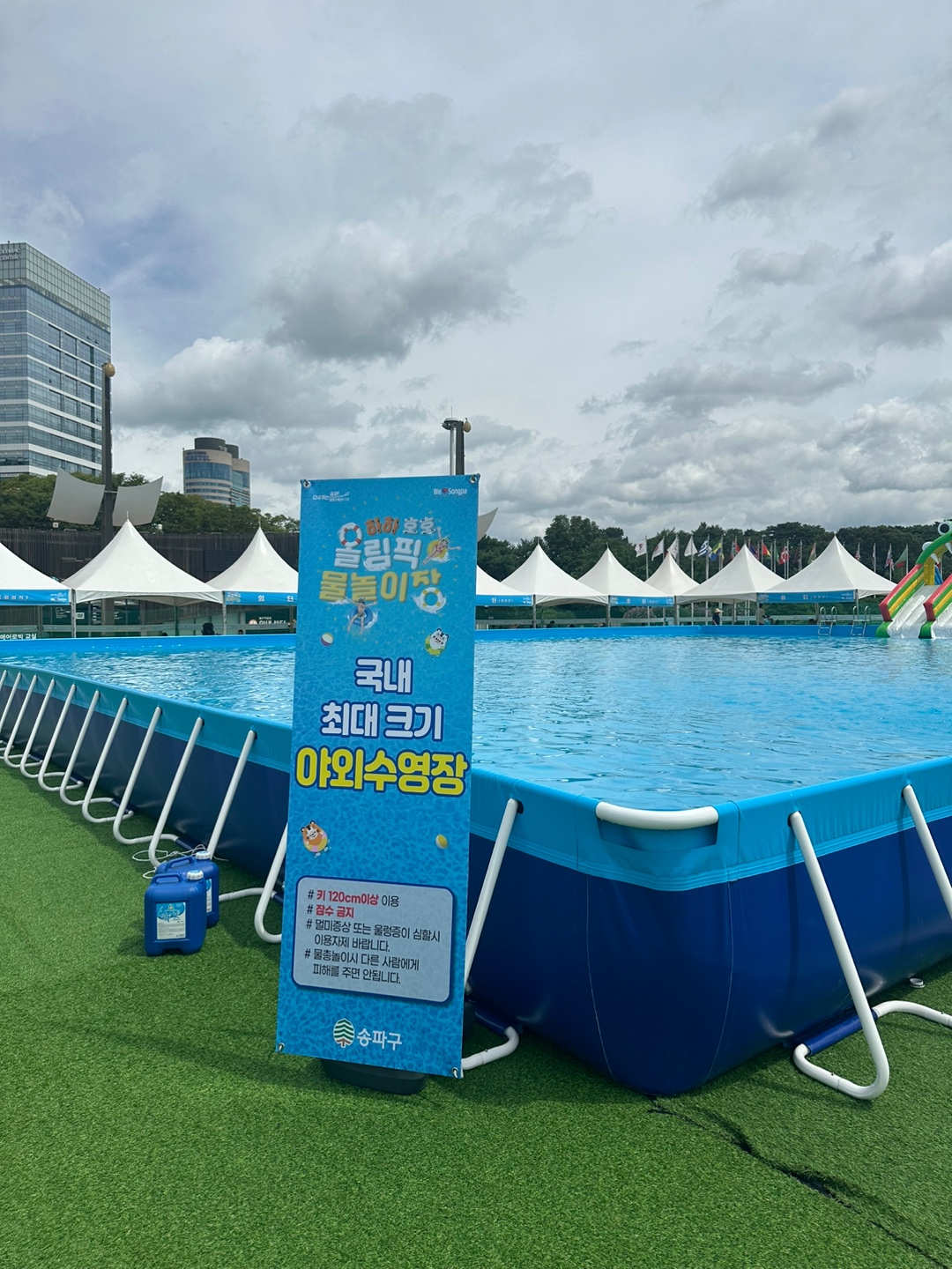 나갈 준비를 하면서부터 더위 걱정에 땀이 줄줄줄 흐르는 것 같았지만, 아이들이 너무 좋아하는 물놀이장이 올림픽공원에 오픈했다고 해서 안 가볼 수 없었어요!! 오늘 소개할 곳은 올림픽공원 내에 한시적으로 운영하는 하하호호 물놀이장입니다.