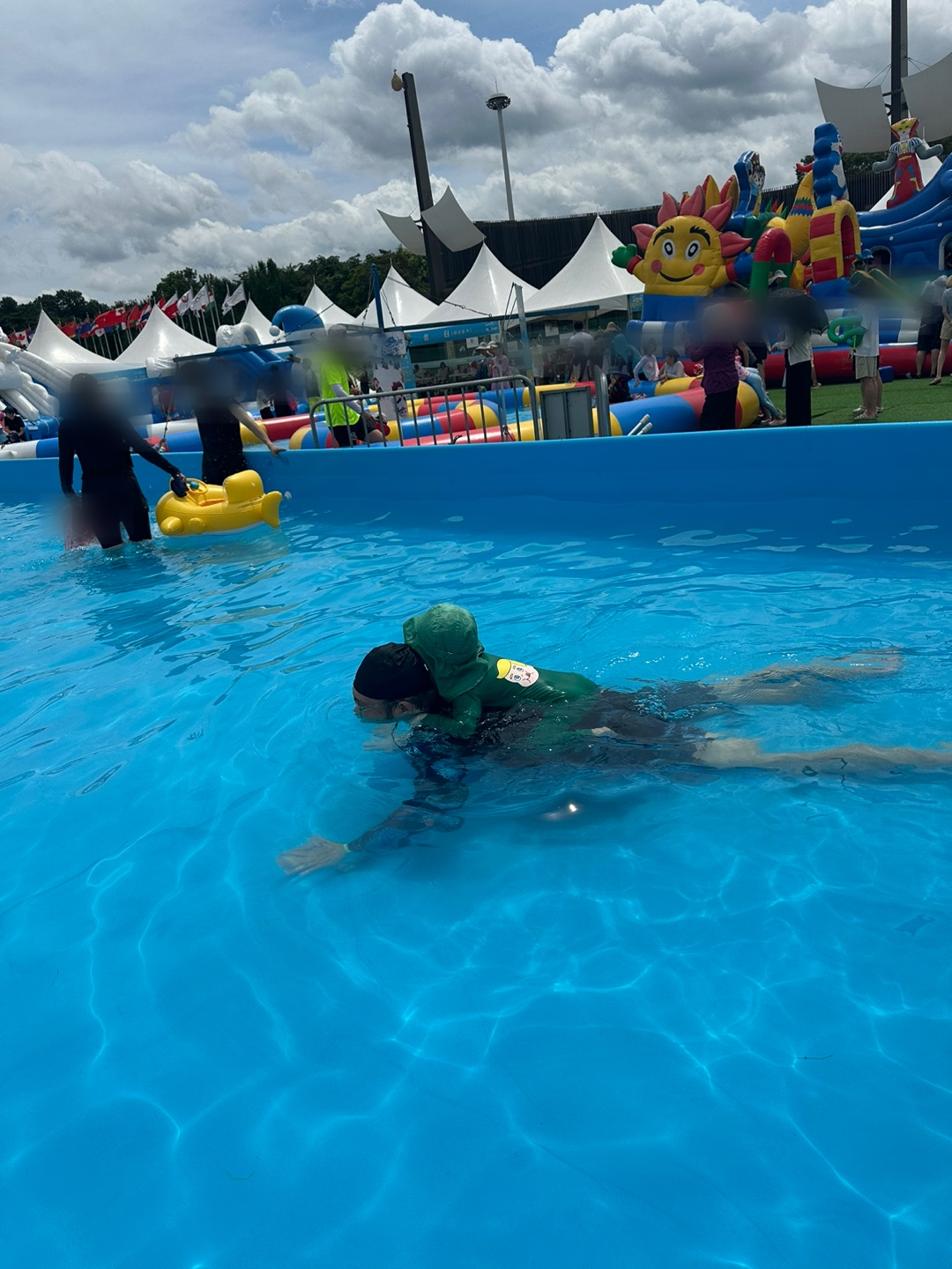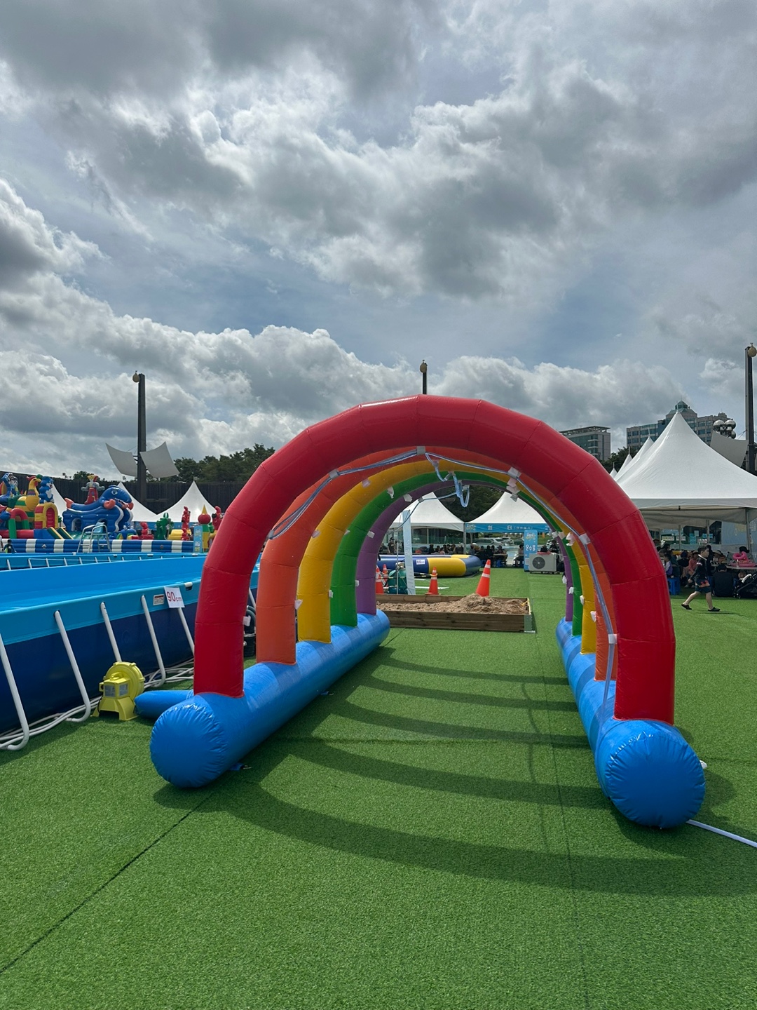 물놀이장은 오전 10시부터 오픈이라 늦잠 잔 탱탱이들을 데리고 부랴부랴 준비해서 10시 반쯤 도착했는데, 조금만 더 늦었으면 1부에 못 들어갈 뻔했어요!! 10시 40분쯤 입장 마감이 되었더라고요!! 급하게 가느라 튜브도 구명조끼도 두고 오고, 챙겨간 물총은 고장 나서 망했구나 싶었지만, 다행히 큰 탱이가 아무것도 없이 너무 잘 놀아주었어요.😍😍