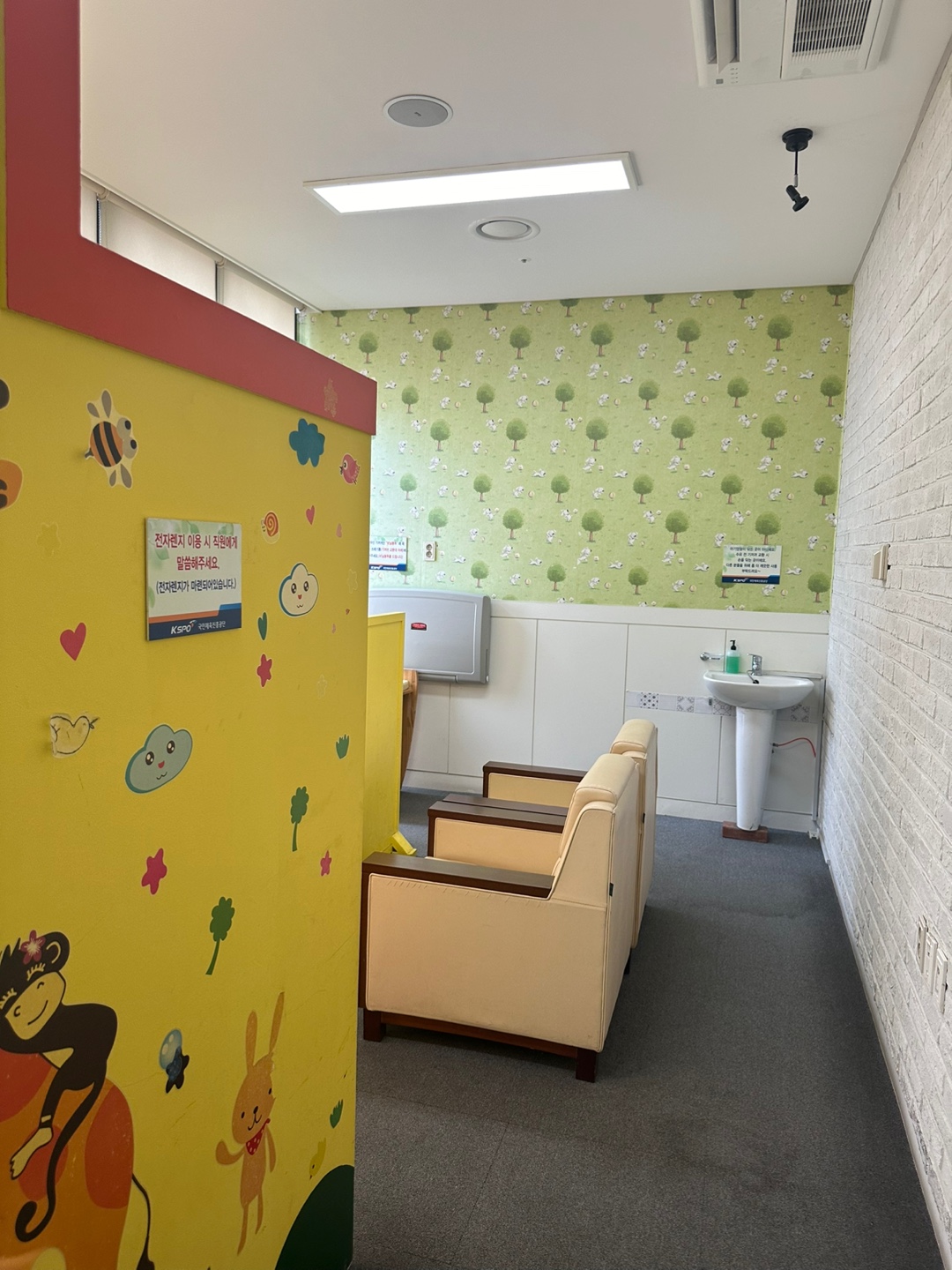 수유실 시설이 오래돼서 깔끔하진 않지만, 에어컨이 시원하게 나와서 편히 수유하고 땀도 식힐 수 있었어요. 수유실 안에 전자레인지는 없었지만, 데스크에 문의하면 데워 주신다고 하니 참고하세요. 수유실은 물놀이장 입구 반대편 올림픽공원 안내센터 안쪽에 있어요.😄😄