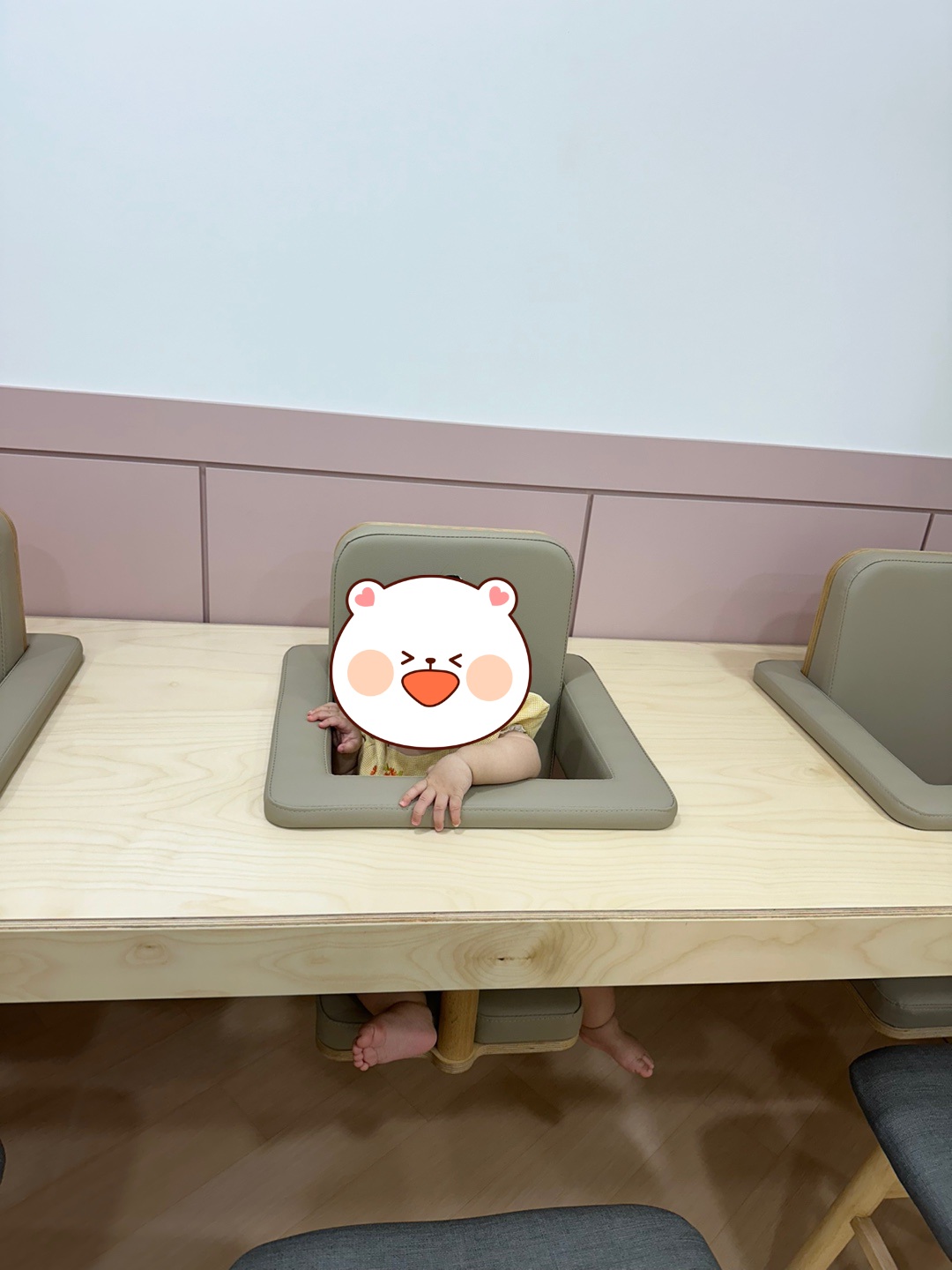 아가들을 위한 수유실이 있기는 하지만, 이용 대상이 24개월 이상이다 보니 기저귀 갈이대나 수유 의자가 하나씩밖에 없더라고요. 이유식 먹일 수 있는 의자도 작은 탱이에게는 크더라고요. 그래도 한 그릇 뚝딱 잘 받아 먹은 작은 탱이였어요.🤣수유실 안쪽에 세면대가 따로 없는 것은 아쉬웠지만, 전자레인지나 분유 포트는 잘 비치되어 있고 워낙 깔끔하게 잘 관리되어 있어 불편함은 없었어요!!👍👍