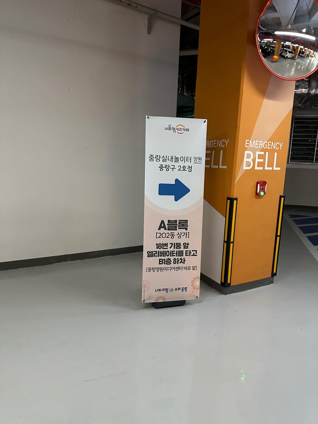 신내역 프라디움 상가 주차장 쪽으로 들어오셔서 오른쪽으로 쭉 가시면 18번 기둥 쪽에 실내놀이터와 가장 가까운 엘리베이터가 있어요! 주차장이 넓지만 중간중간 실내놀이터 위치를 안내하는 베너들이 설치되어 있어 찾기 어렵지 않아요!!