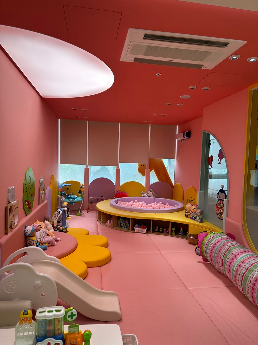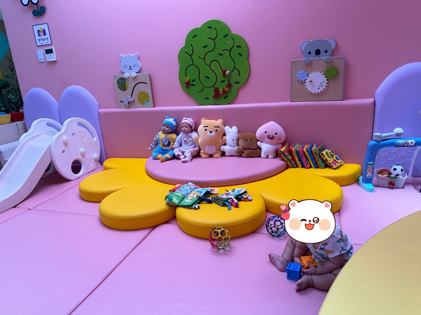 그리고 다둥이인 탱탱이네가 무엇보다 마음에 들었던 점은 영아존이 따로 분리되어 있다는 것이었어요!! 덕분에 큰 탱이, 작은 탱이도 안전하게 재미있게 놀 수 있었어요!! 영아존은 아주 핑크핑크하고 아기자기하게 잘 꾸며져 있으며, 소근육과 대근육을 골고루 자극할 수 있는 장난감들도 잘 갖추어져 있어요!!😊😊