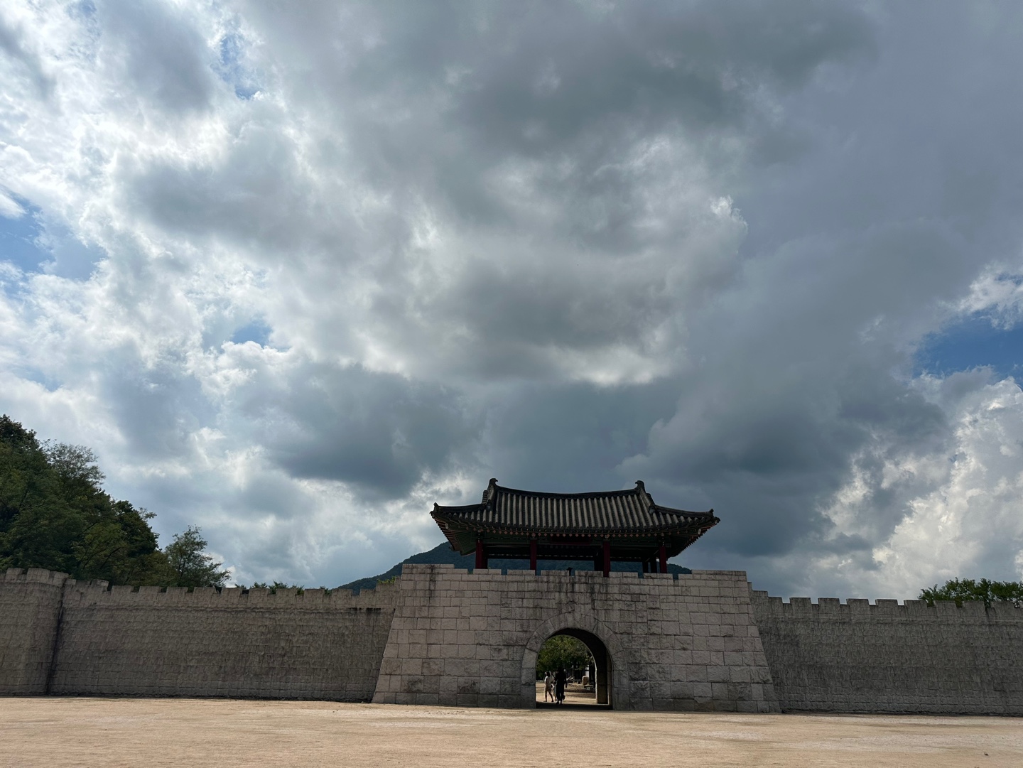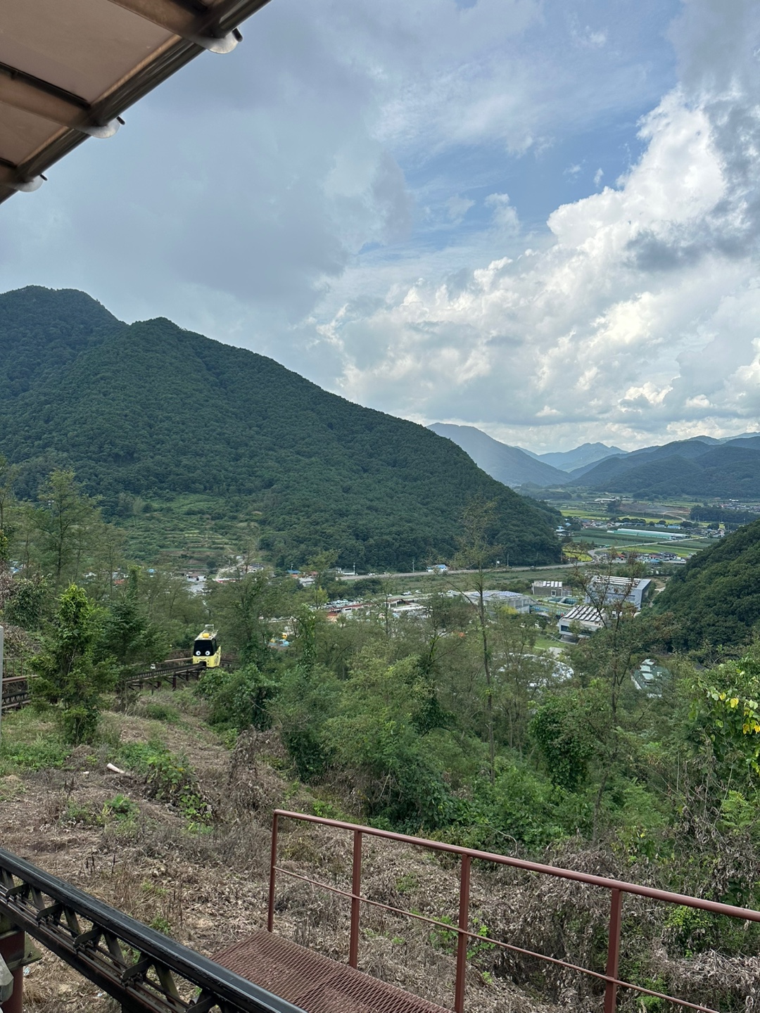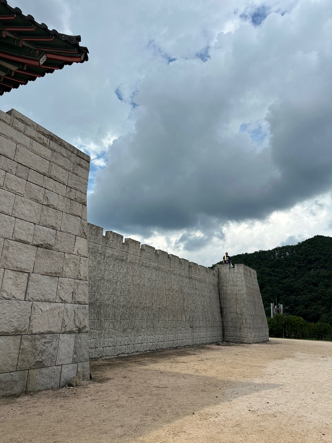 모노레일을 타고 올라가면 촬영 세트장을 볼 수 있어요. 제1촬영장인 평양성, 제2촬영장 안시성, 제3촬영장 요동성까지 구경할 수 있지만... 가을이라고 믿을 수 없는 더위에 탱탱이네는 제1촬영장만 구경하고 다시 모노레일을 타고 후퇴합니다..(장군!! 성을 점령하지 못하였사옵니다.)😭😭 모노레일을 타고 내려오는데 비까지 내리더라구요.