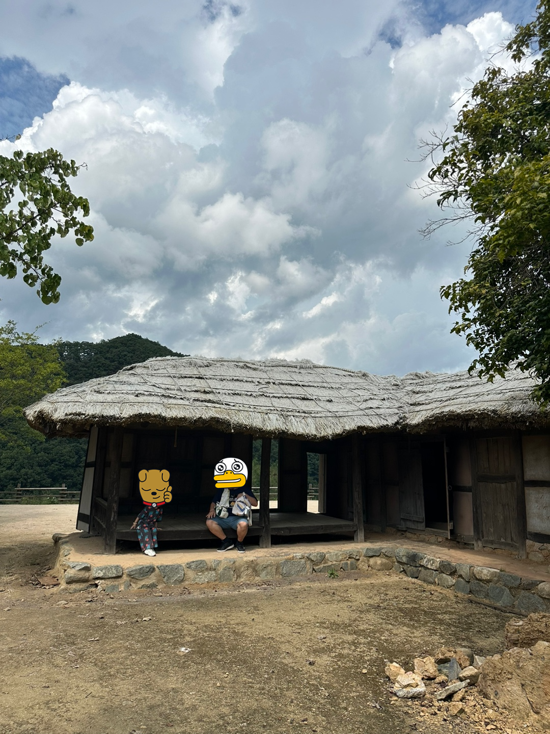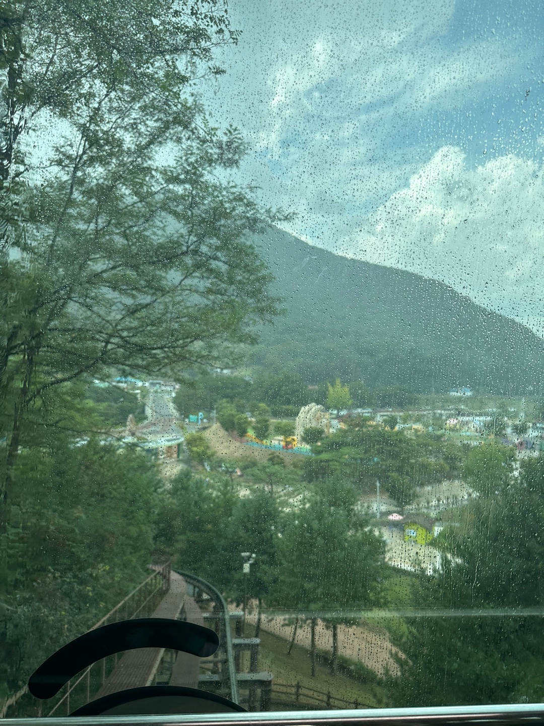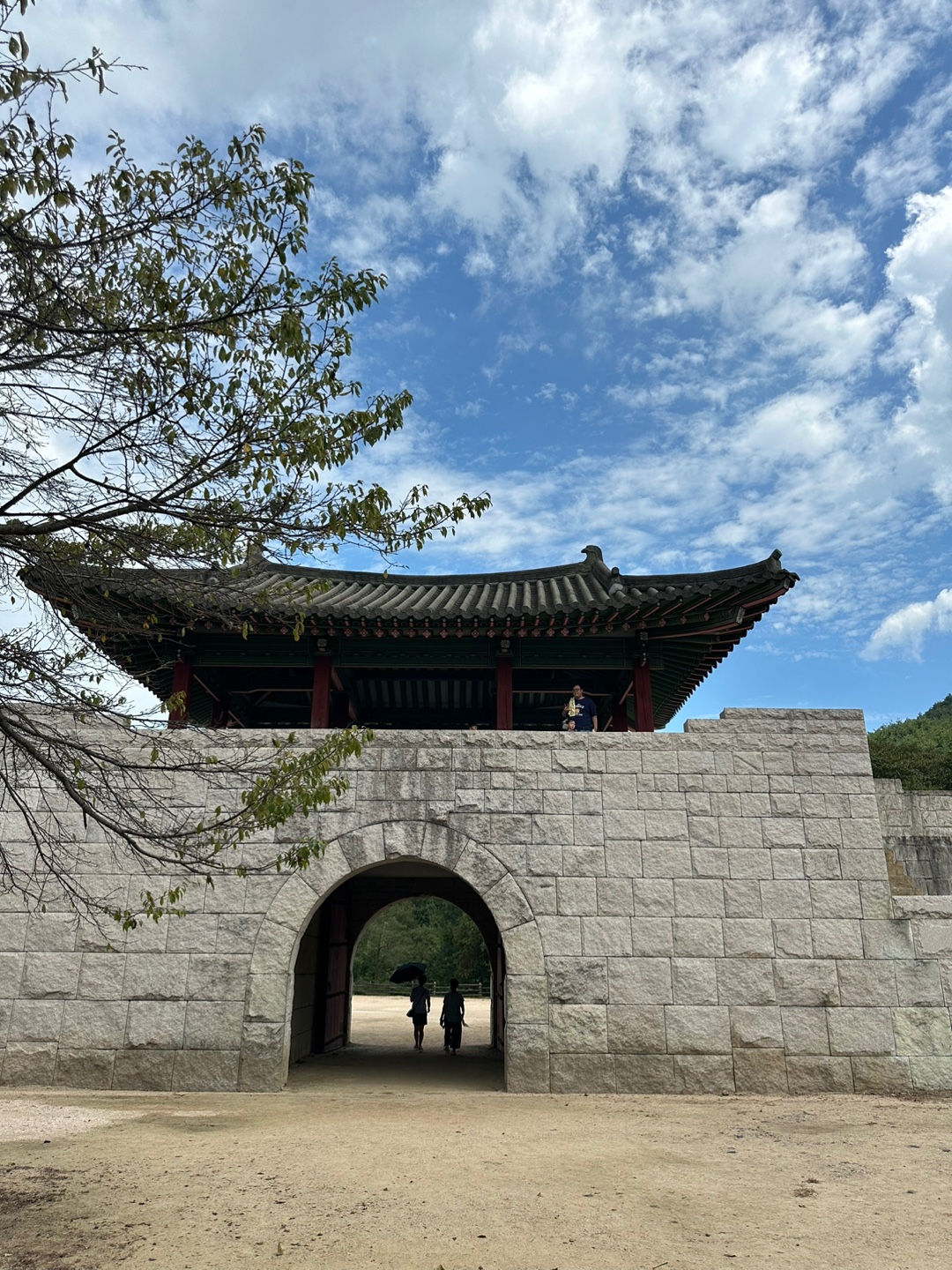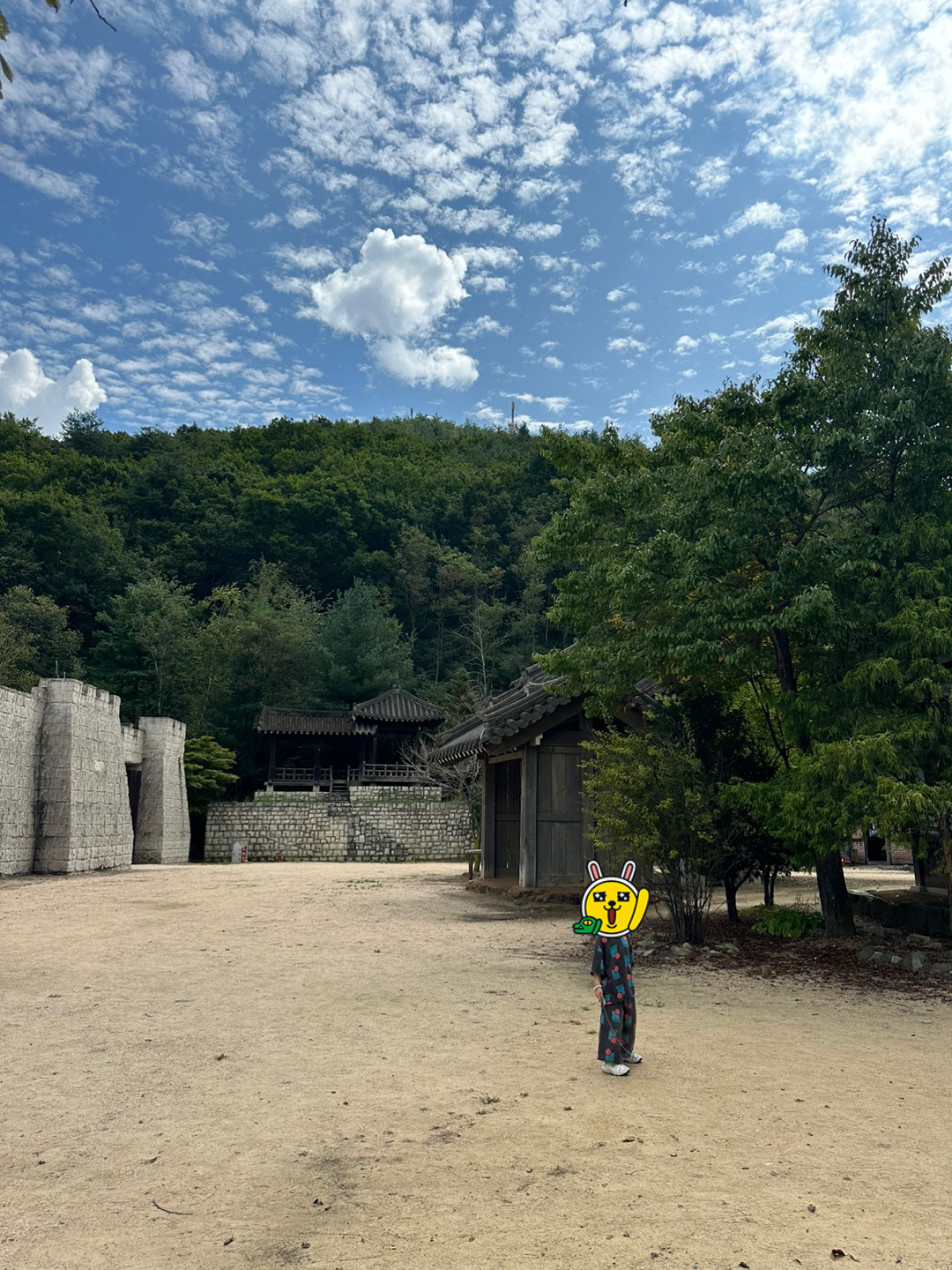 모노레일을 타고 올라가면 촬영 세트장을 볼 수 있어요. 제1촬영장인 평양성, 제2촬영장 안시성, 제3촬영장 요동성까지 구경할 수 있지만... 가을이라고 믿을 수 없는 더위에 탱탱이네는 제1촬영장만 구경하고 다시 모노레일을 타고 후퇴합니다..(장군!! 성을 점령하지 못하였사옵니다.)😭😭 모노레일을 타고 내려오는데 비까지 내리더라구요.