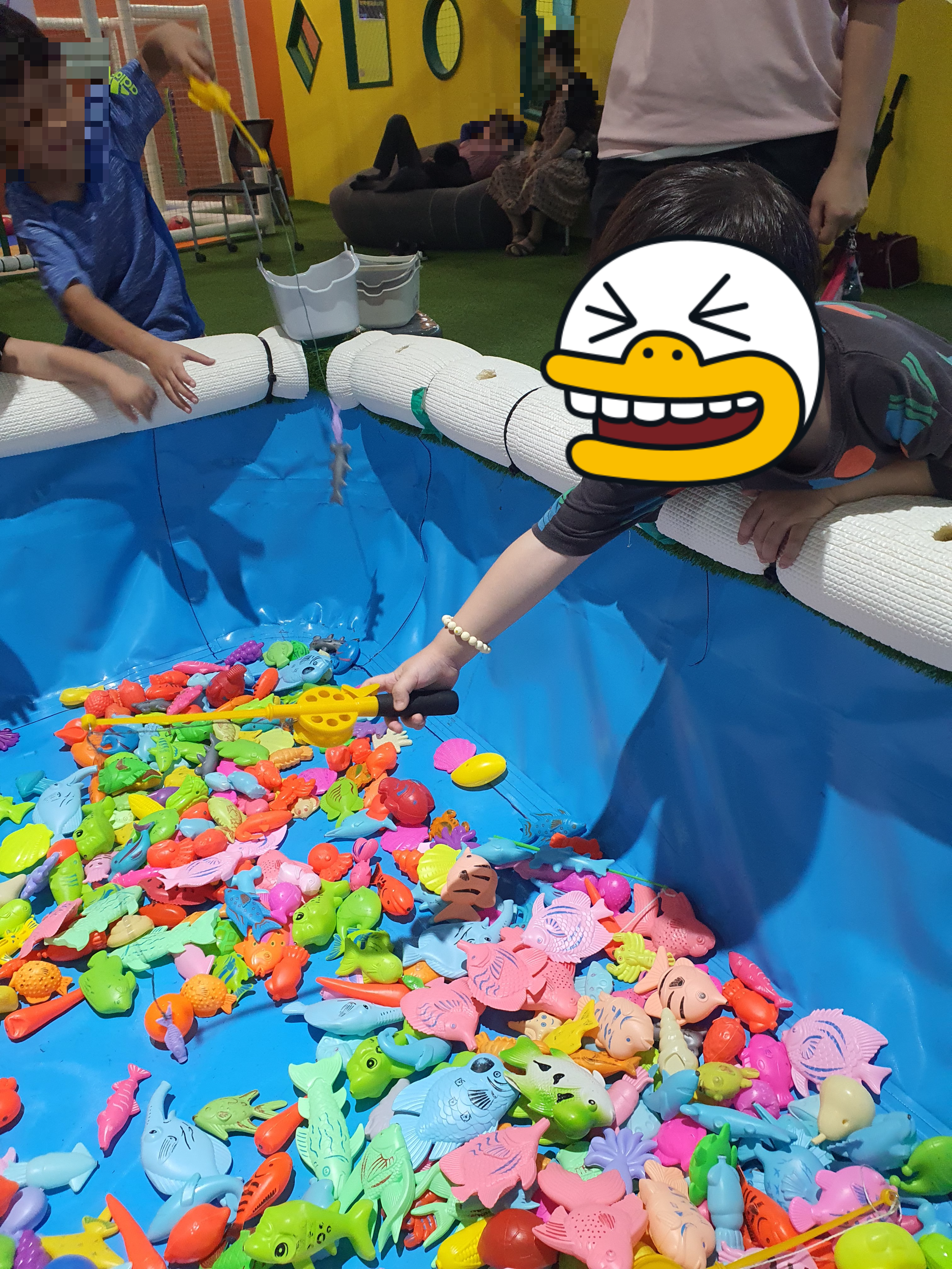 키즈월드는 아이들이 좋아할만한 놀이기구들과 즐길거리로 가득 차 있었어요. 기차, 자동차, 포크레인, 썰매 등 각종 탈 것들을 횟수 제한없이 마음껏 탈 수 있고, 큰 탱이가 가장 좋아하는 낚시놀이까지 있어서 오늘도 큰 탱이는 낚시 놀이에 흠뻑 취해 시간 가는줄 몰랐다고 합니다.😭😭