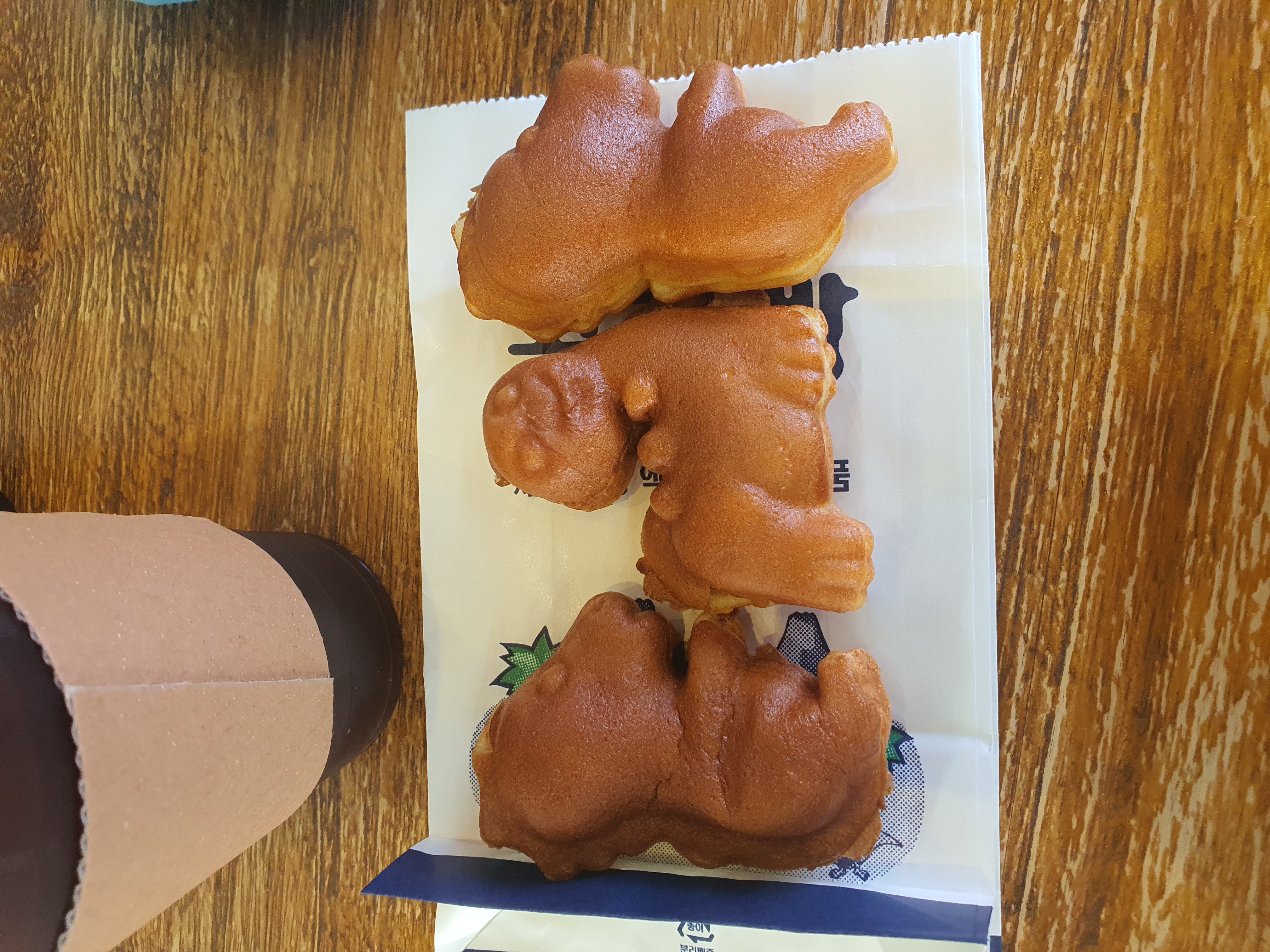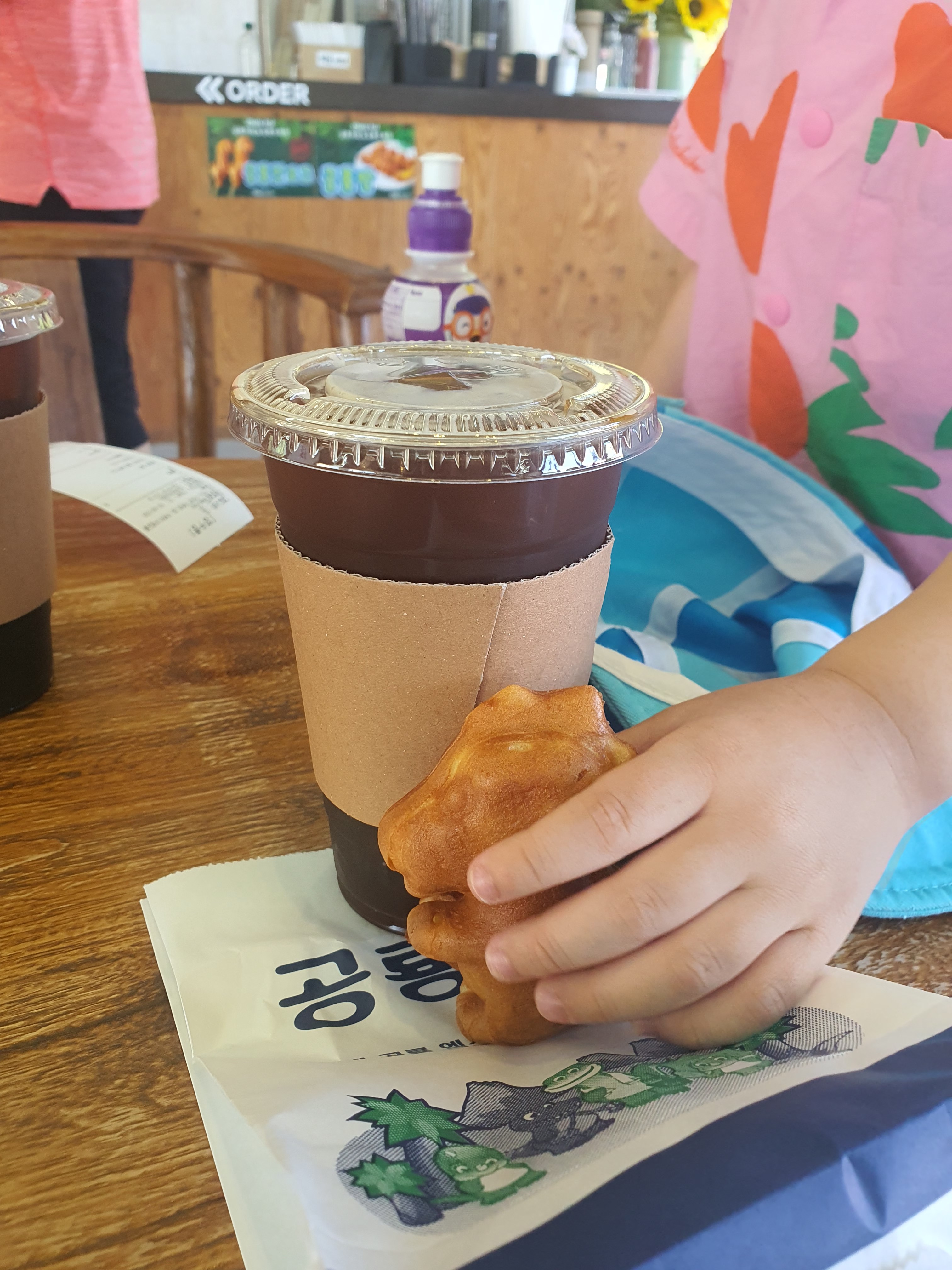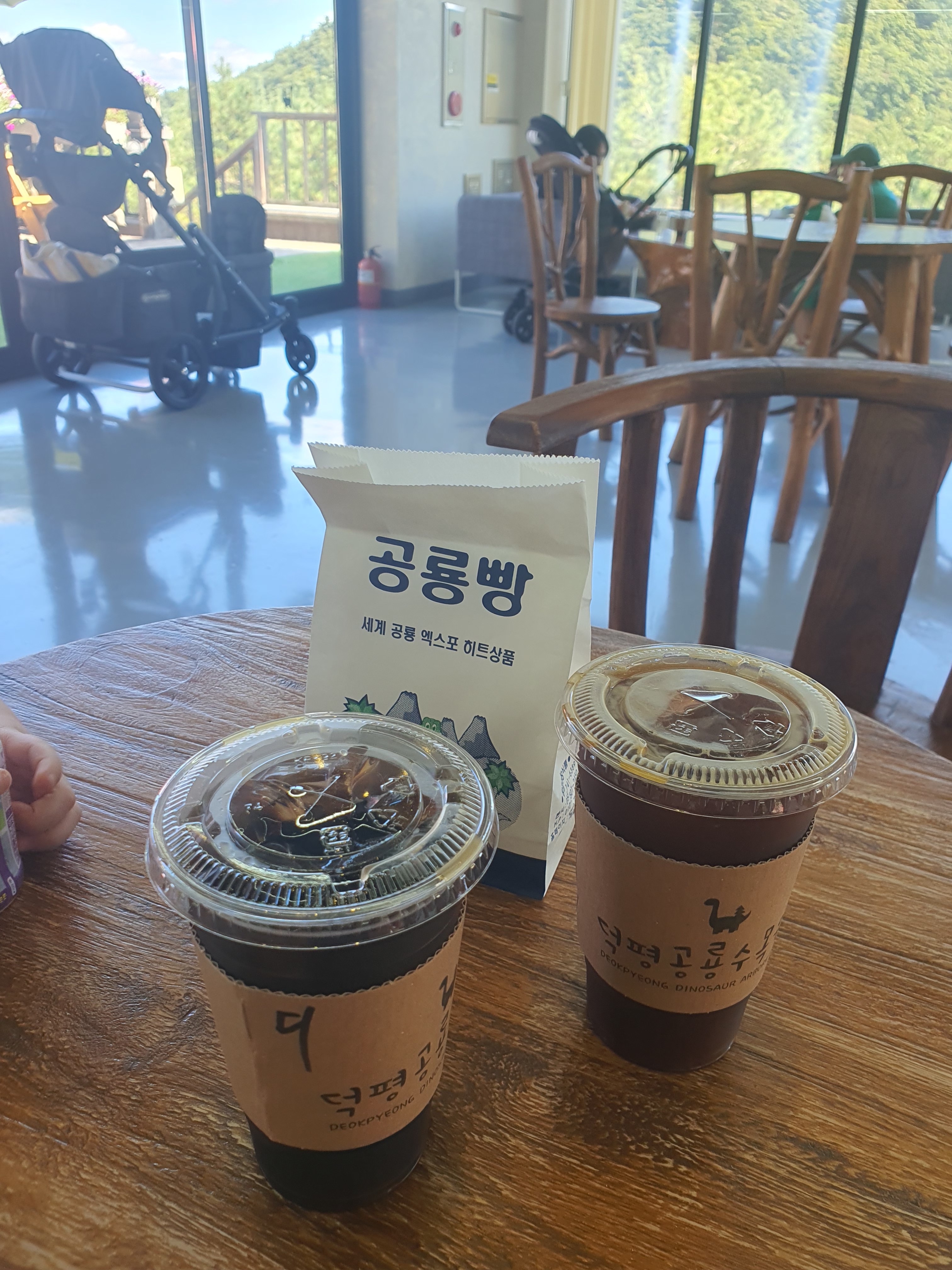 관람로를 따라 조금만 가다 보면 카페와 식당이 나옵니다. 공룡 모양 만쥬와 핫도그를 팔고 있는데, 가격은 사악하지만 큰 탱이는 또 그냥 지나칠 수 는 없겠죠.... 디카페인 콜드브루도 판매하고 있어서 탱탱맘과 파파도 커피 수혈을 해봅니다.🥰🥰 1층으로 내려가면 음식점도 있는데, 가격이 너무 비싸서 패스했어요. 1층에 간이 수유실이 있어서, 그곳에서 수유실만 이용했어요.🍼🍼