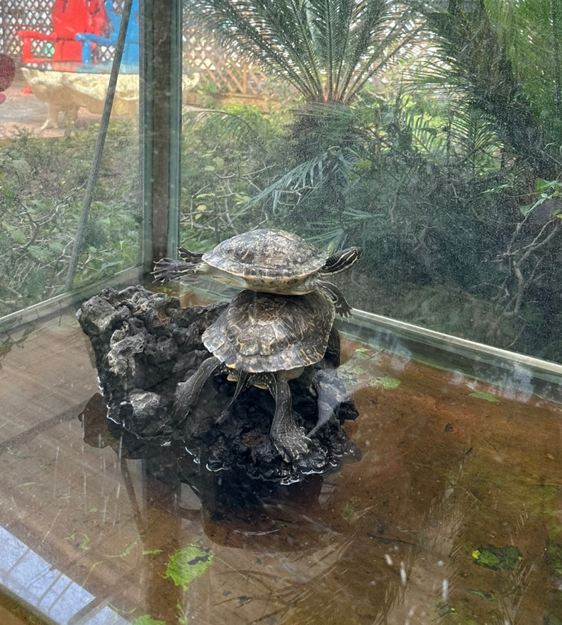 반수생 거북은 입구 쪽 작은 어항에 있었는데, 너무 작아서 "엥?" 할 정도였지만, 거북이 한 마리가 다른 거북이 위에 올라가 마치 요가를 하고있는 것 같은 귀여운 모습을 볼 수 있었습니다.🐢🐢