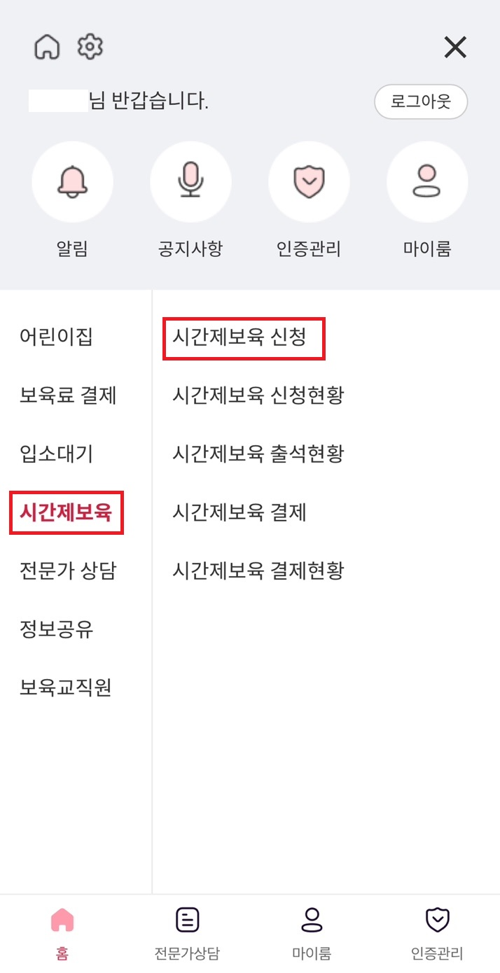 아이사랑 어플에서 시간제 보육 신청 방법은 다음과 같습니다.