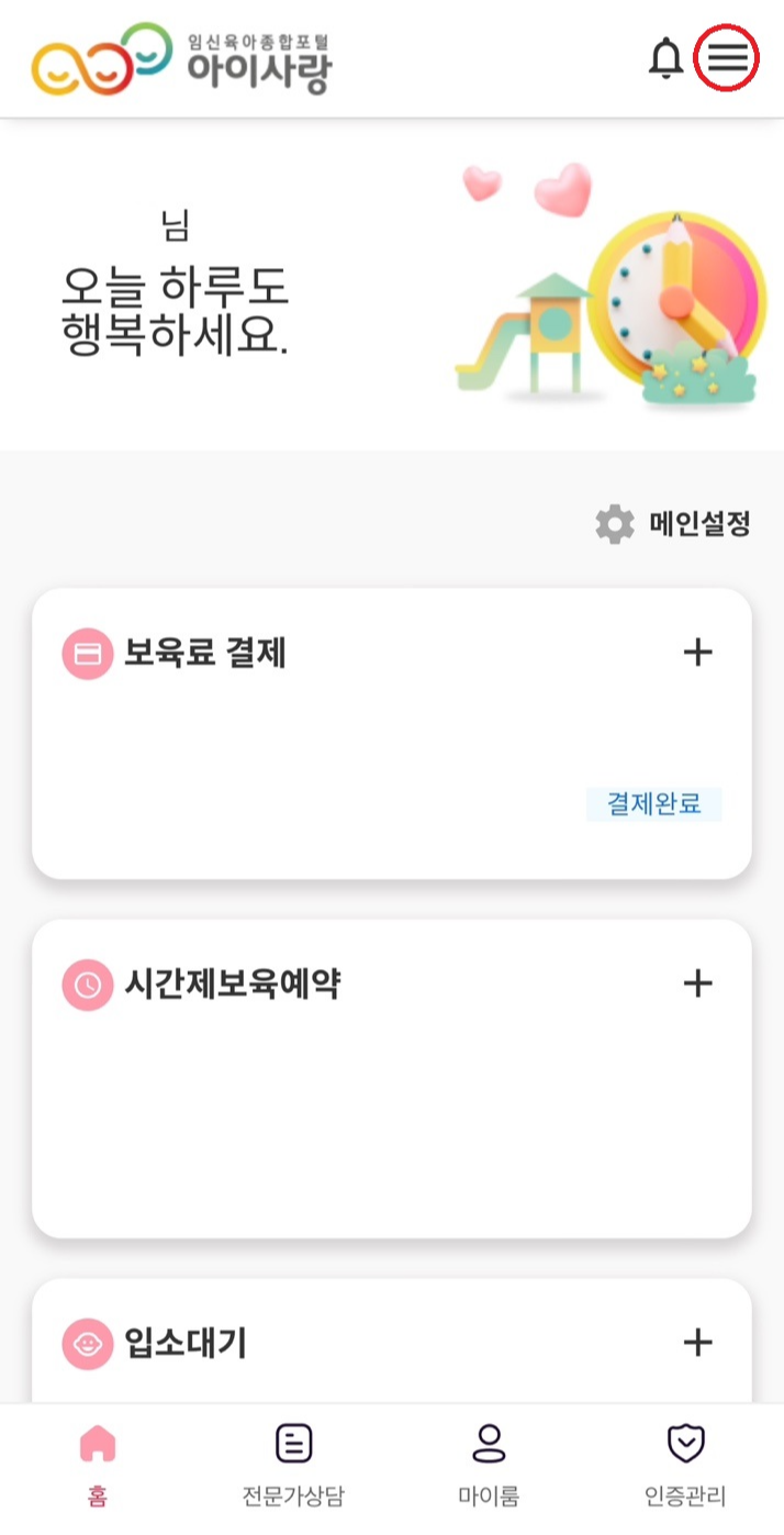 - 아이사랑 어플에 로그인합니다.