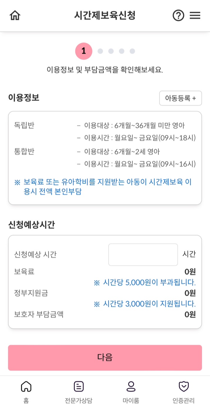 시간제 보육 신청 방법