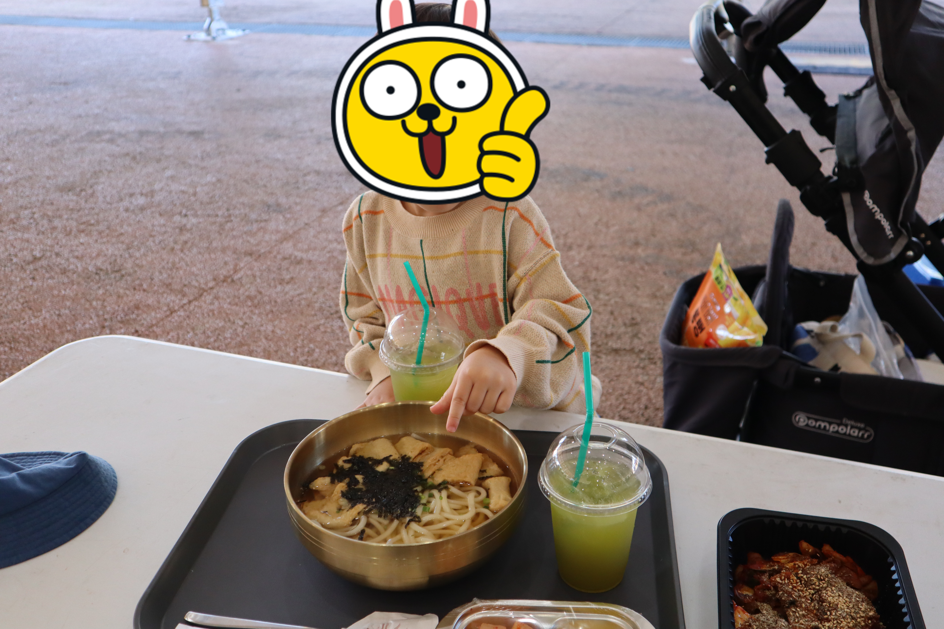 다양한 음식들을 팔고 있었는데 탱탱이네는 우동, 소바, 사탕수수, 곱창볶음을 사서 맛있게 욤욤 먹었답니다.