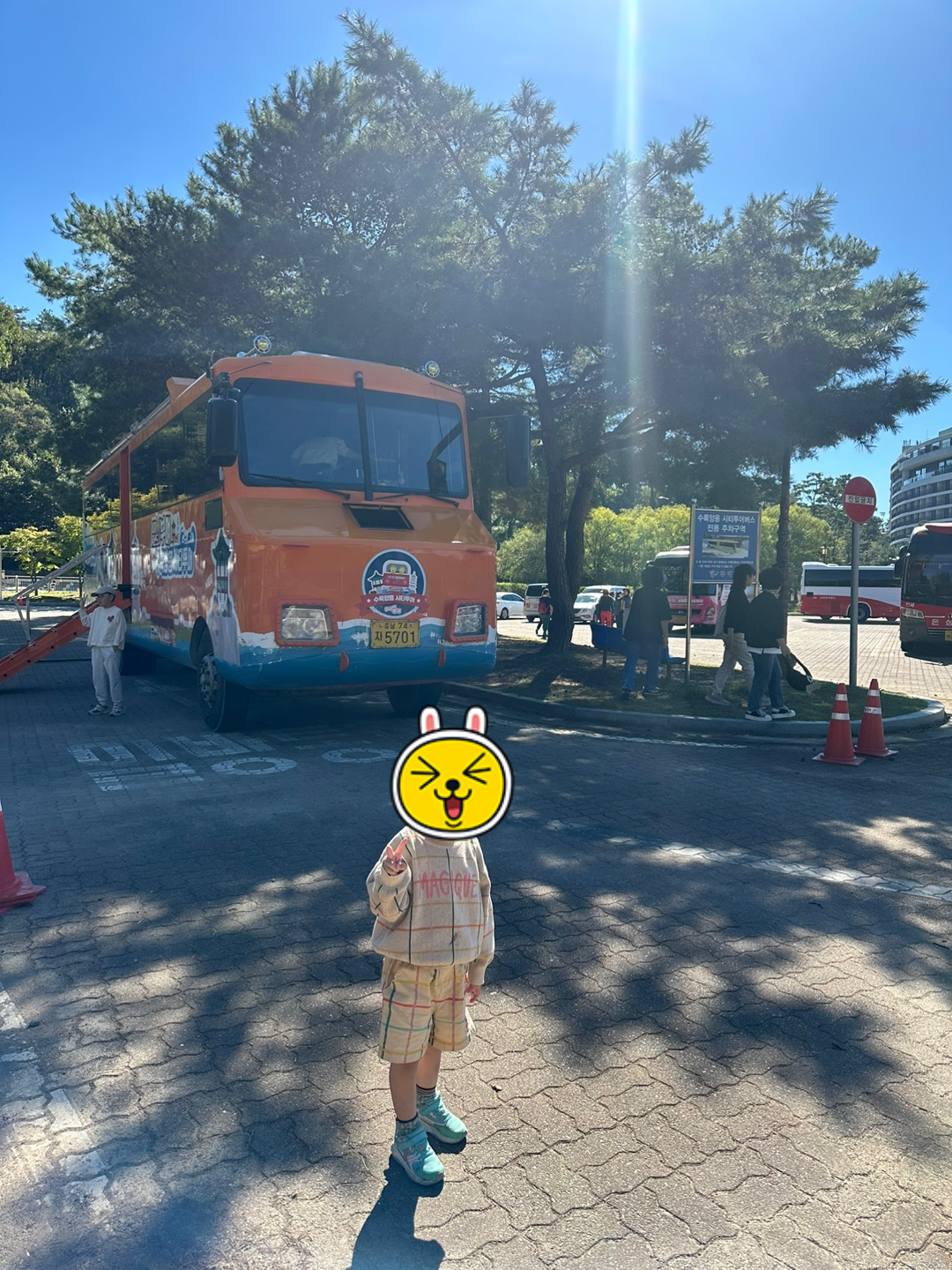 그렇게 서서 조금 기다리니 저 멀리서 오늘 우리가 탈 주황색 수륙양용버스가 왔습니다.🚍🚍