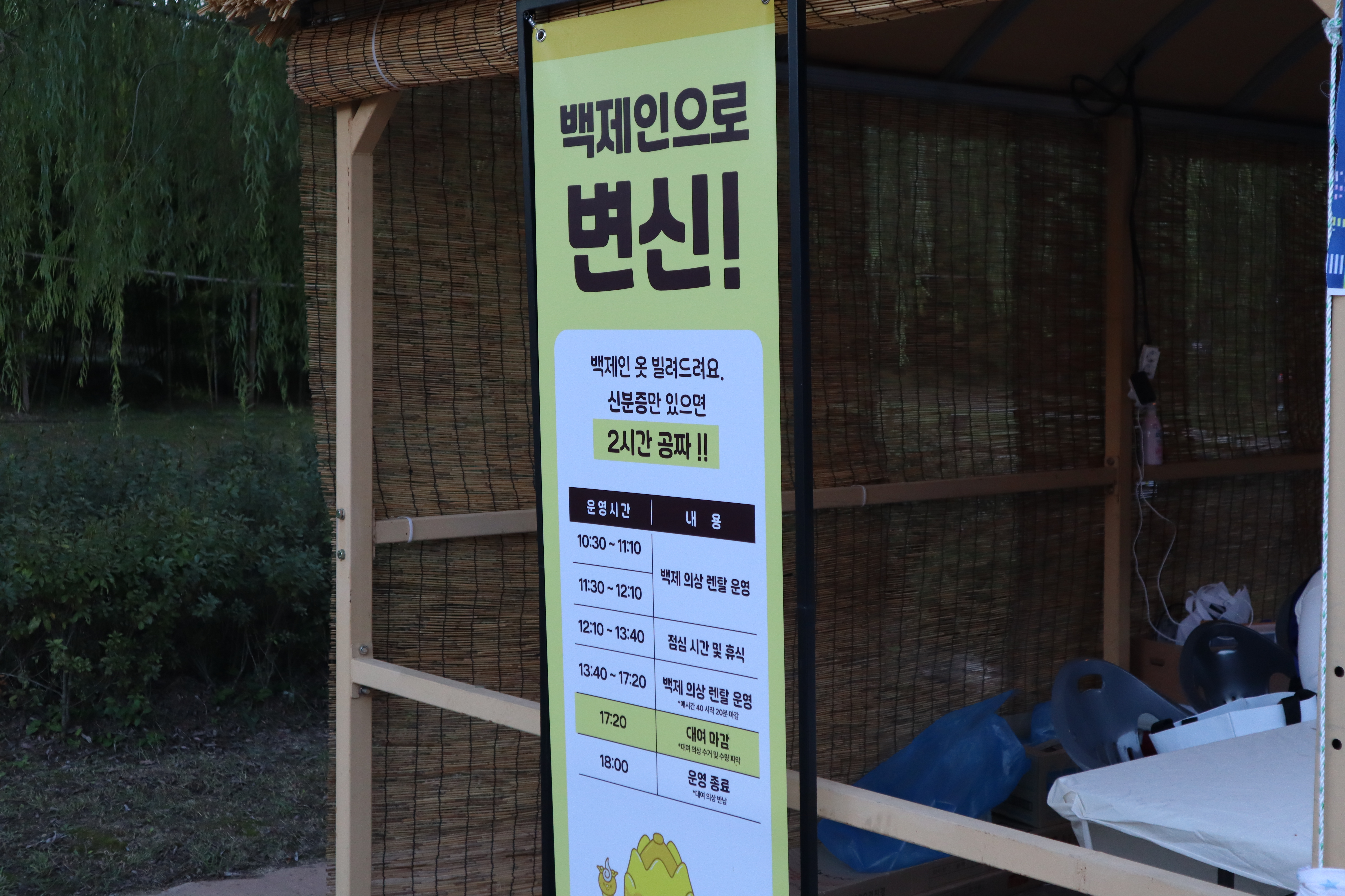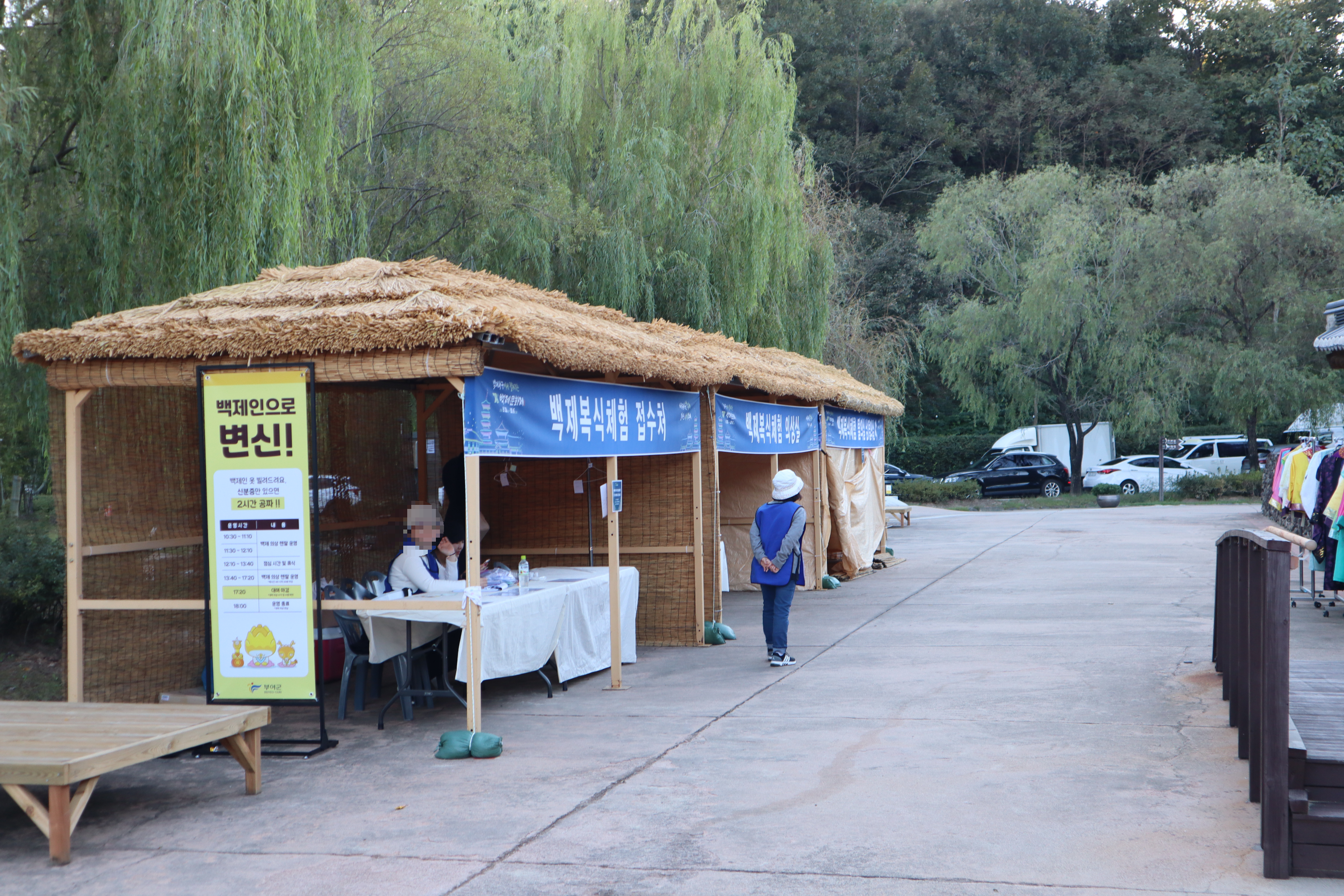 백제문화단지 정문을 들어와 왼쪽부터 가게되면 백제 생활 체험 마을(생활지구)이 나타나는데, 이 곳에서 백제 전통 복장을 입고 백제 귀족이나 왕족으로 변신해보는 체험을 할 수 있습니다. 의상 대여 후 백제의 정전과 왕궁을 배경으로 사진을 찍을 수 있어 특별한 추억이 될 수 있을거 같더라고요. 하지만 저희는 시간에 쫒겨 나가는 길에 알게되서 체험은 해보지 못했어요.😭😭