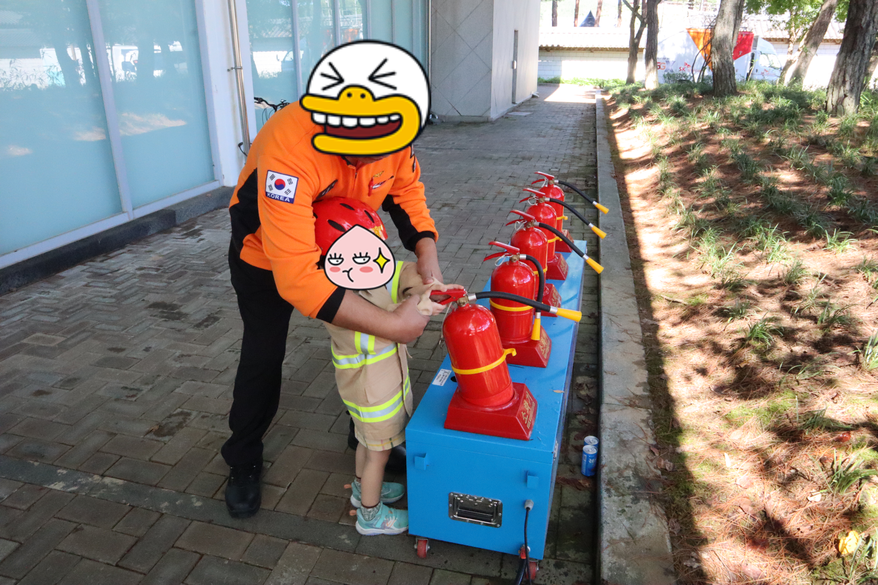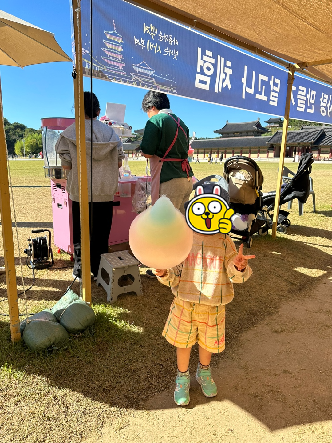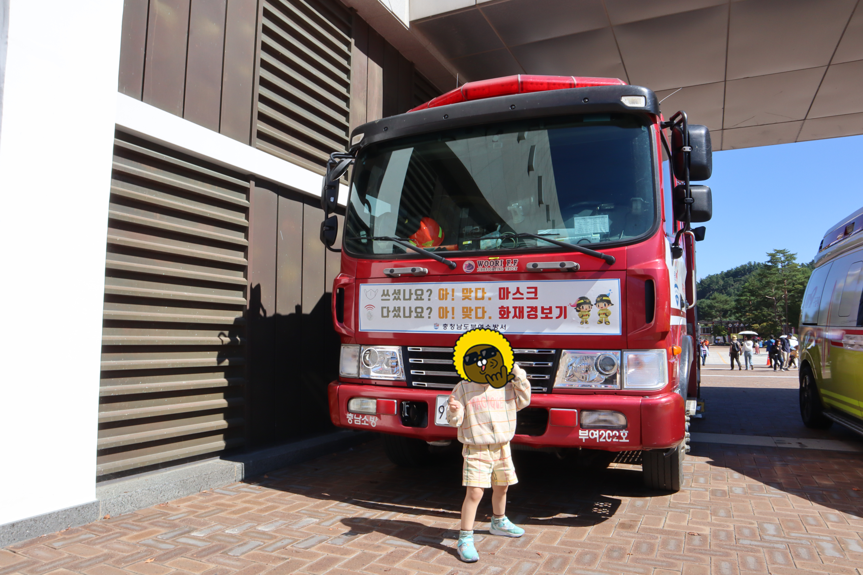 백제문화제 기간이라 그런지 체험 부스들도 많이 들어와 있더라고요. 키링, 토기, 솜사탕 등 만들어 볼 수 있는 체험 부스들이 많았는데 우리 큰 탱이는 솜사탕 만드는 체험을 했습니다. 체험 부스외에도 소방체험, 마술공연, 미로찾기, 축구공차기, 에어바운스, 유아용 볼풀장 등 즐길거리가 무척이나 많았어요. 또 경찰관분들과 소방관분들 그리고 보건소에서 나와서 축제하는 곳을 돌면서 이것 저것 나눠 주시더라고요. 저희 큰 탱이도 소방체험도 하고 멋진 경찰관분들과도 사진을 찍었답니다.😄😄