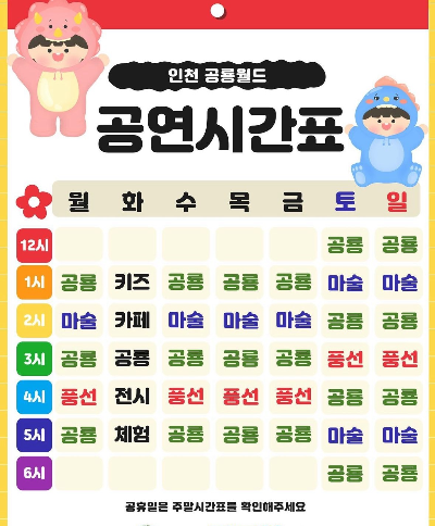 인천공룡월드 요일별 공연시간