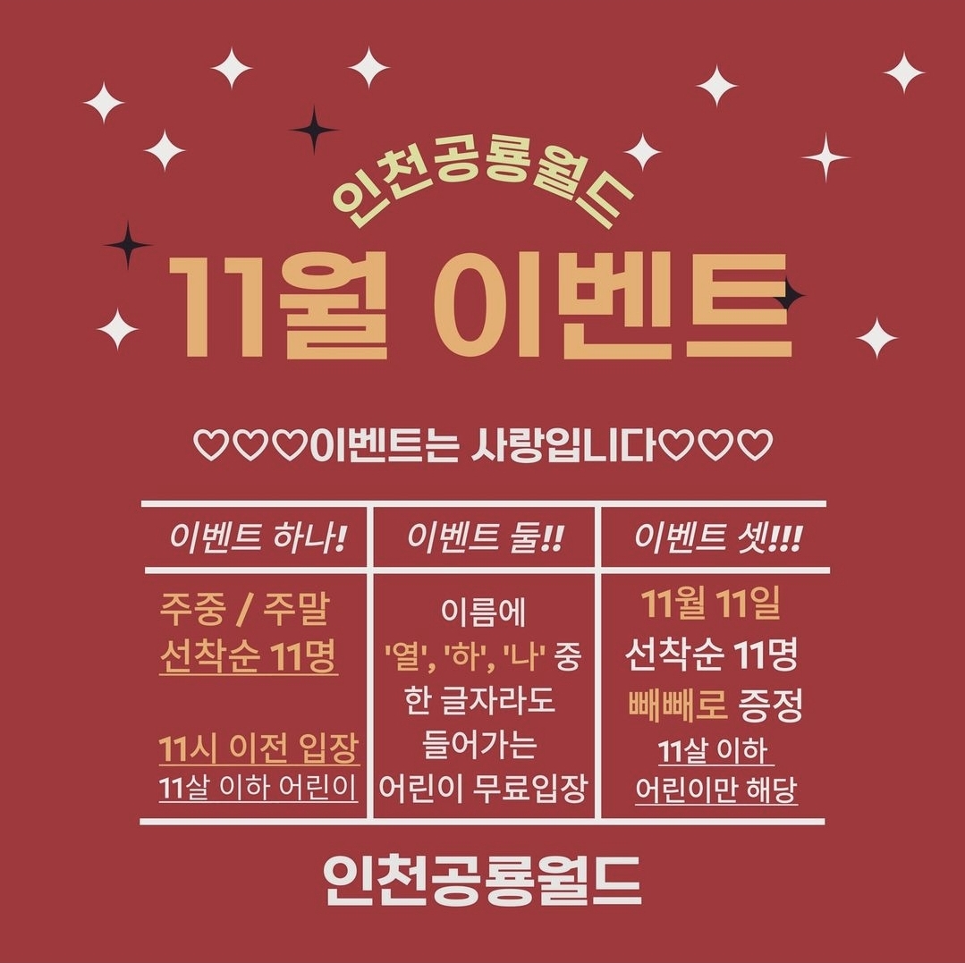 | ✅ 생생한 공룡워킹쇼와 다양한 공연 ✅ 여유롭게 즐길 수 있는 실내 나들이 장소 ✅ 입장하면 모든 시설들이 무료 ✅ 인스타그램을 통한 다양한 할인행사 ✅ 커피숍 운영을 안하는 건 다소 아쉬움 |