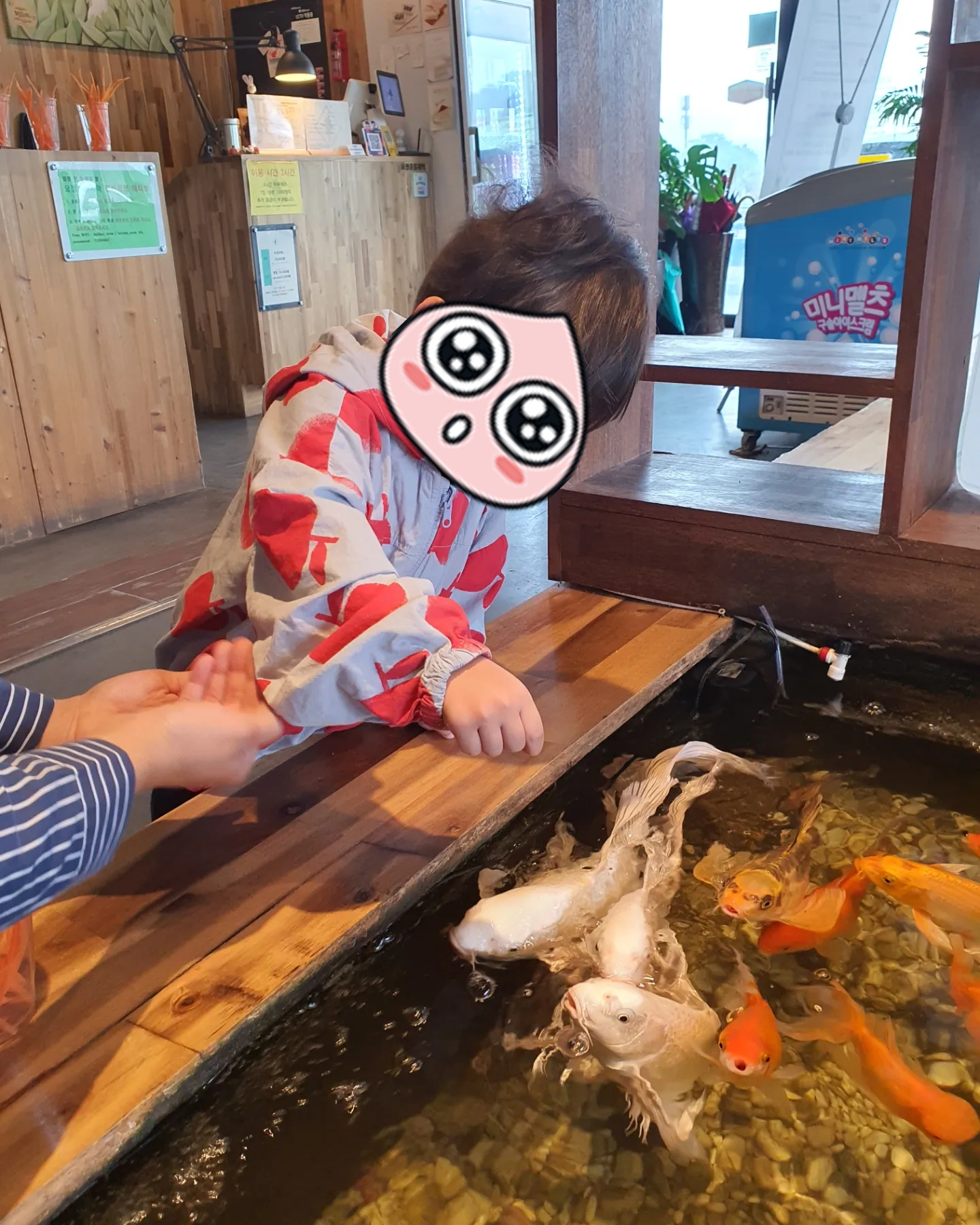 큰 탱이는 물고기에게 먹이주는 것도 재밌어 하더라고요.