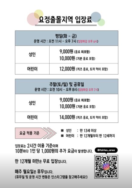 금액과 이용시간 그리고 인스타그램 등