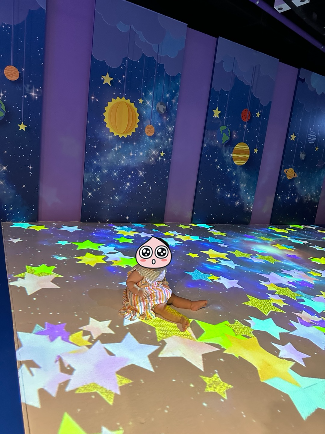바닥에 별이 쏟아지고 있어요.