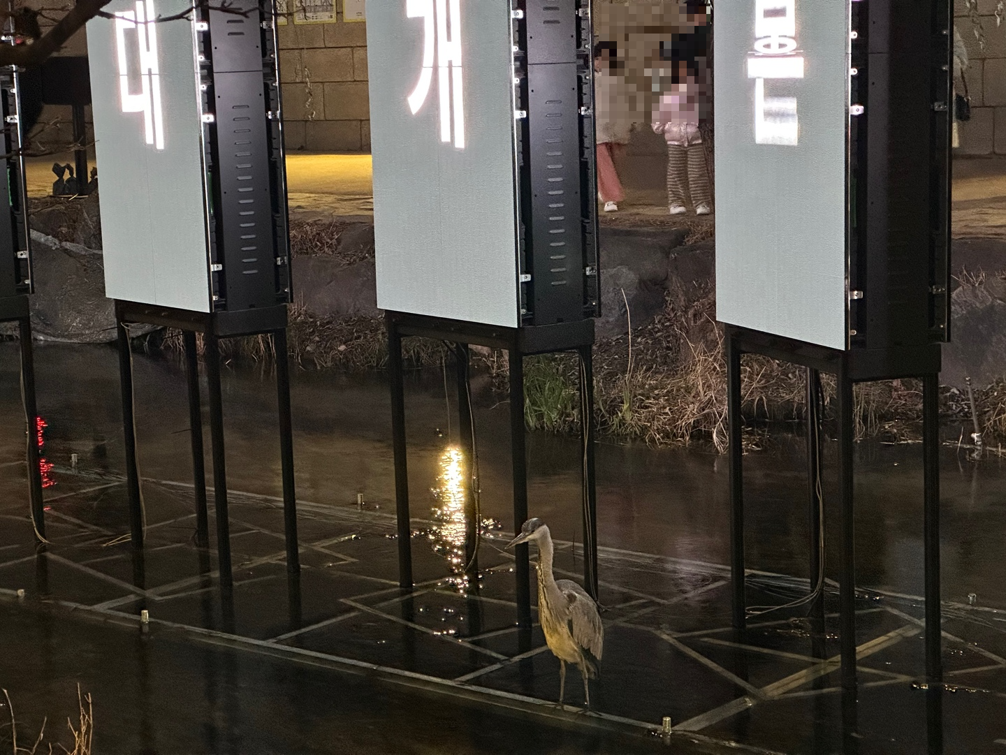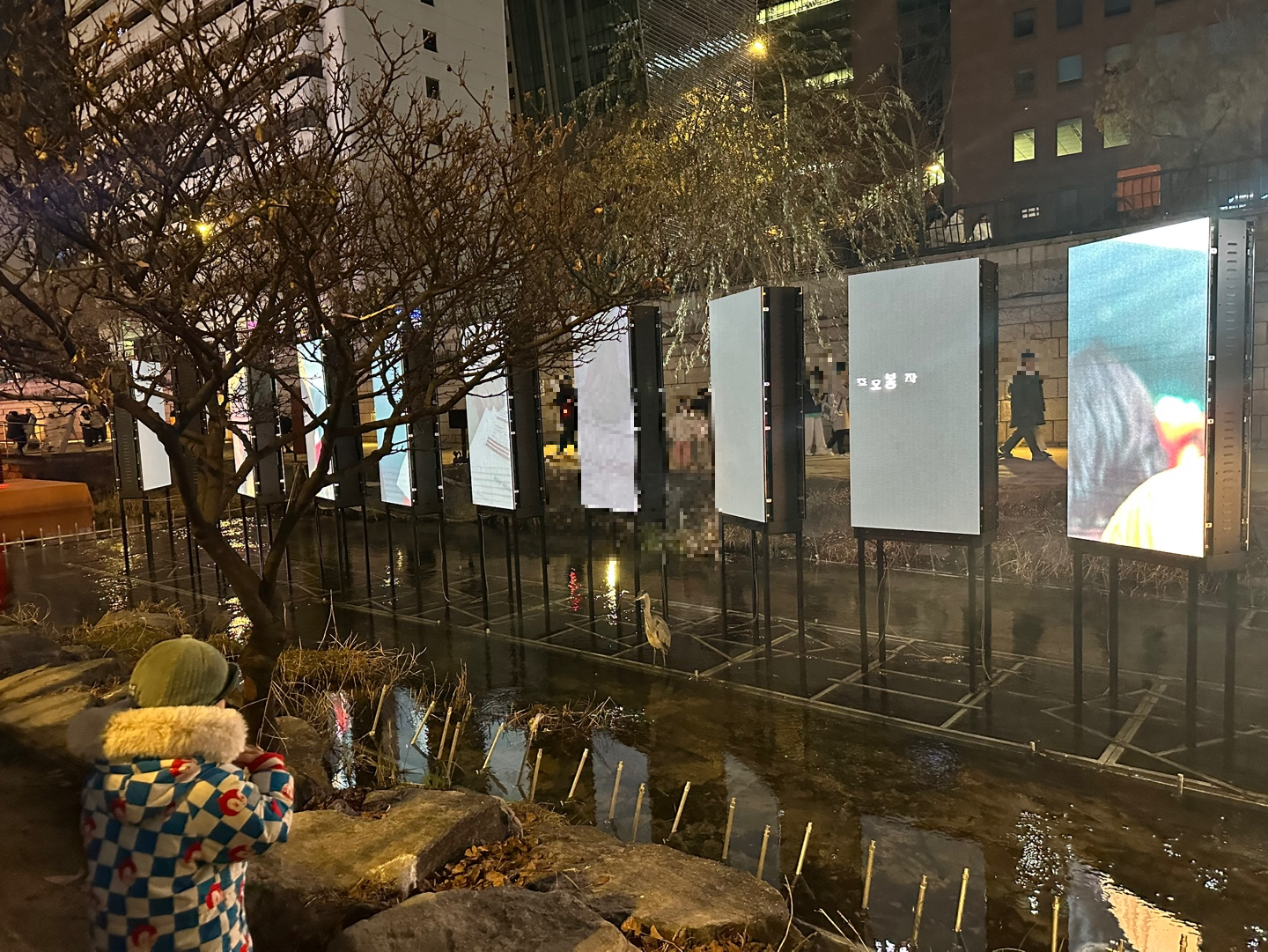 중간쯤 청계천 바닥에 스크린을 설치해
