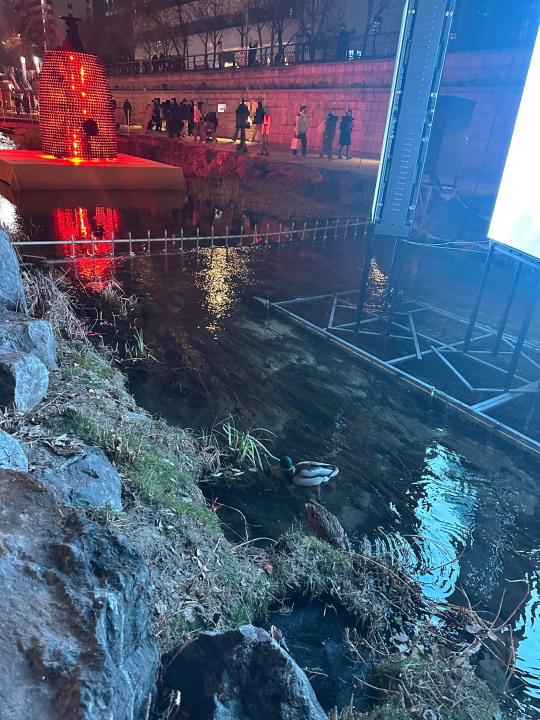 중간쯤 청계천 바닥에 스크린을 설치해