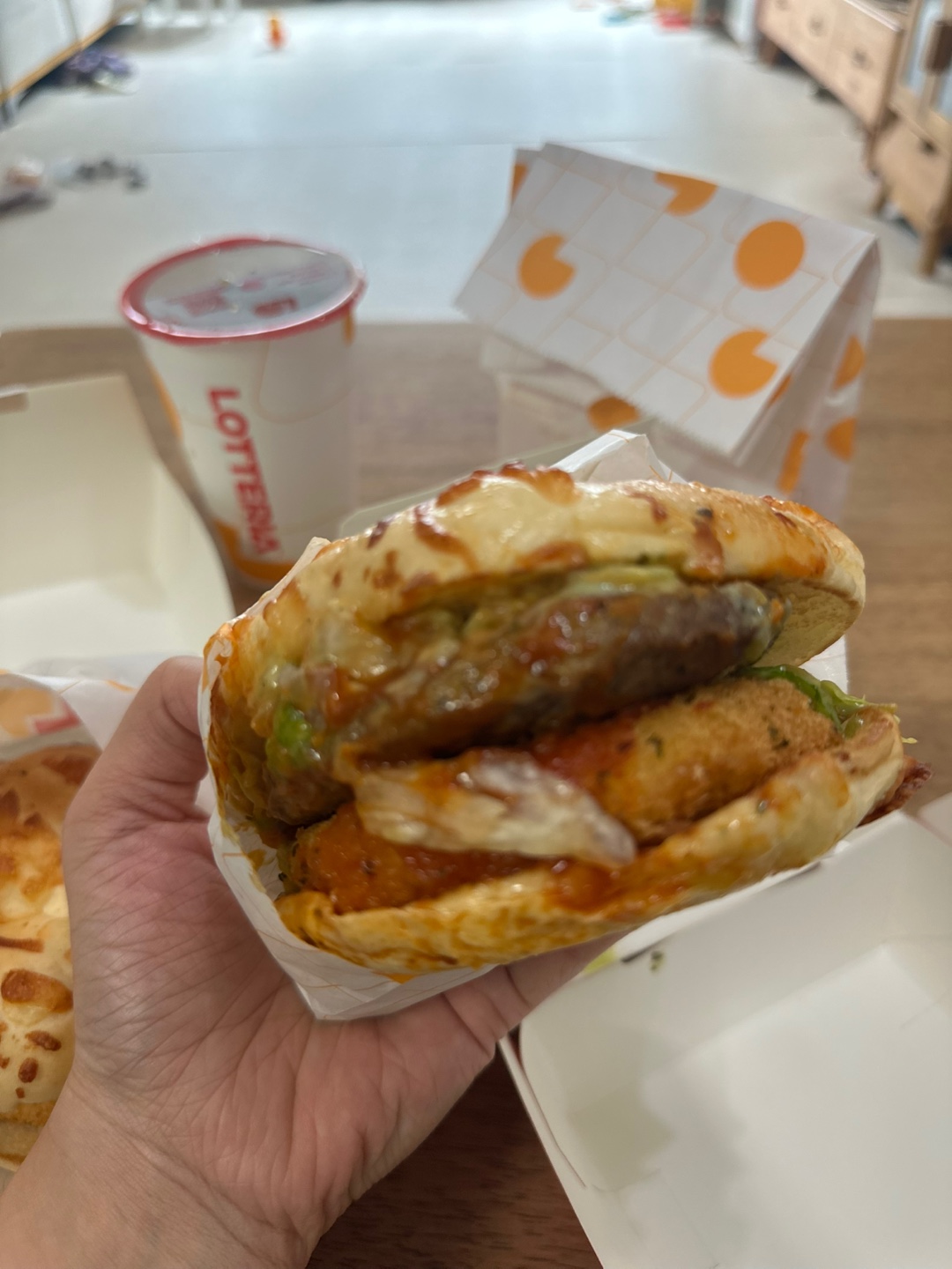 ✔️ 나폴리 피자 한 조각을 그대로 햄버거에 넣은 듯한 맛
